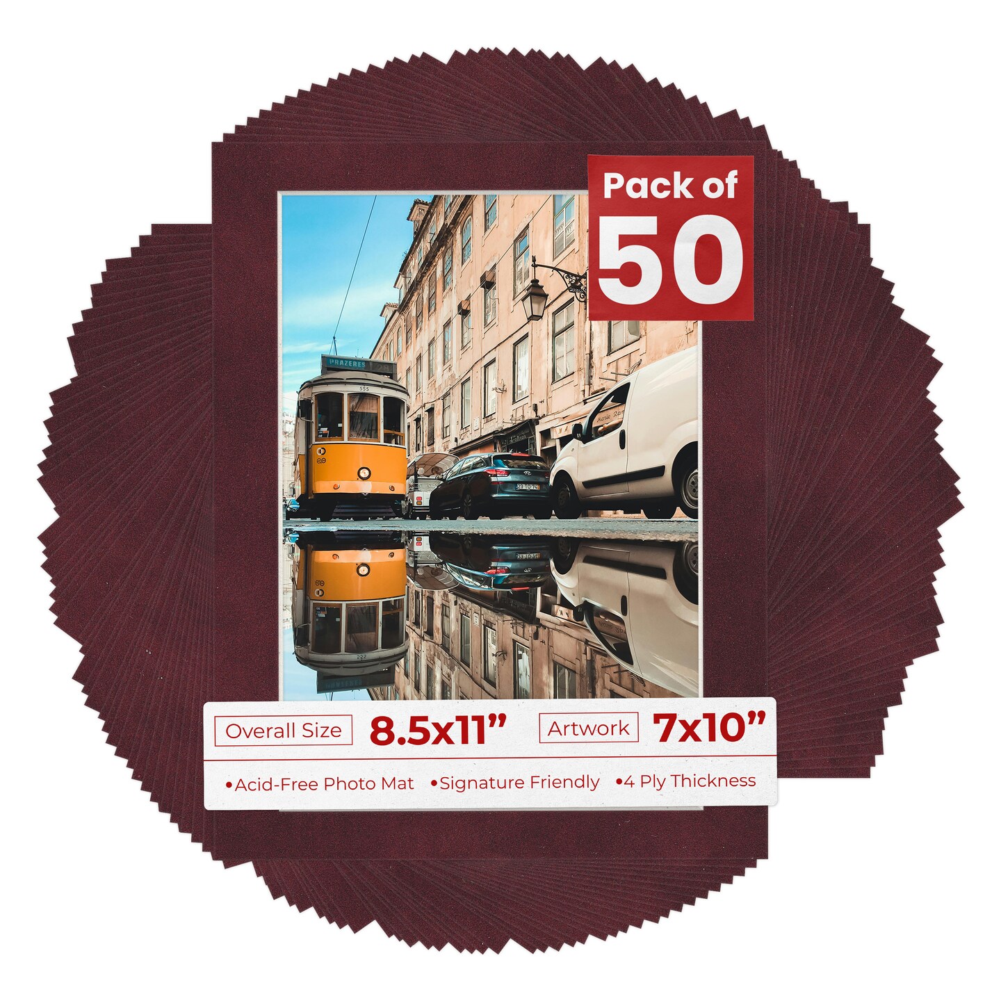 Dark Red Suede Mat Board for 8.5x11 Frames - Fits 7x10 Photos