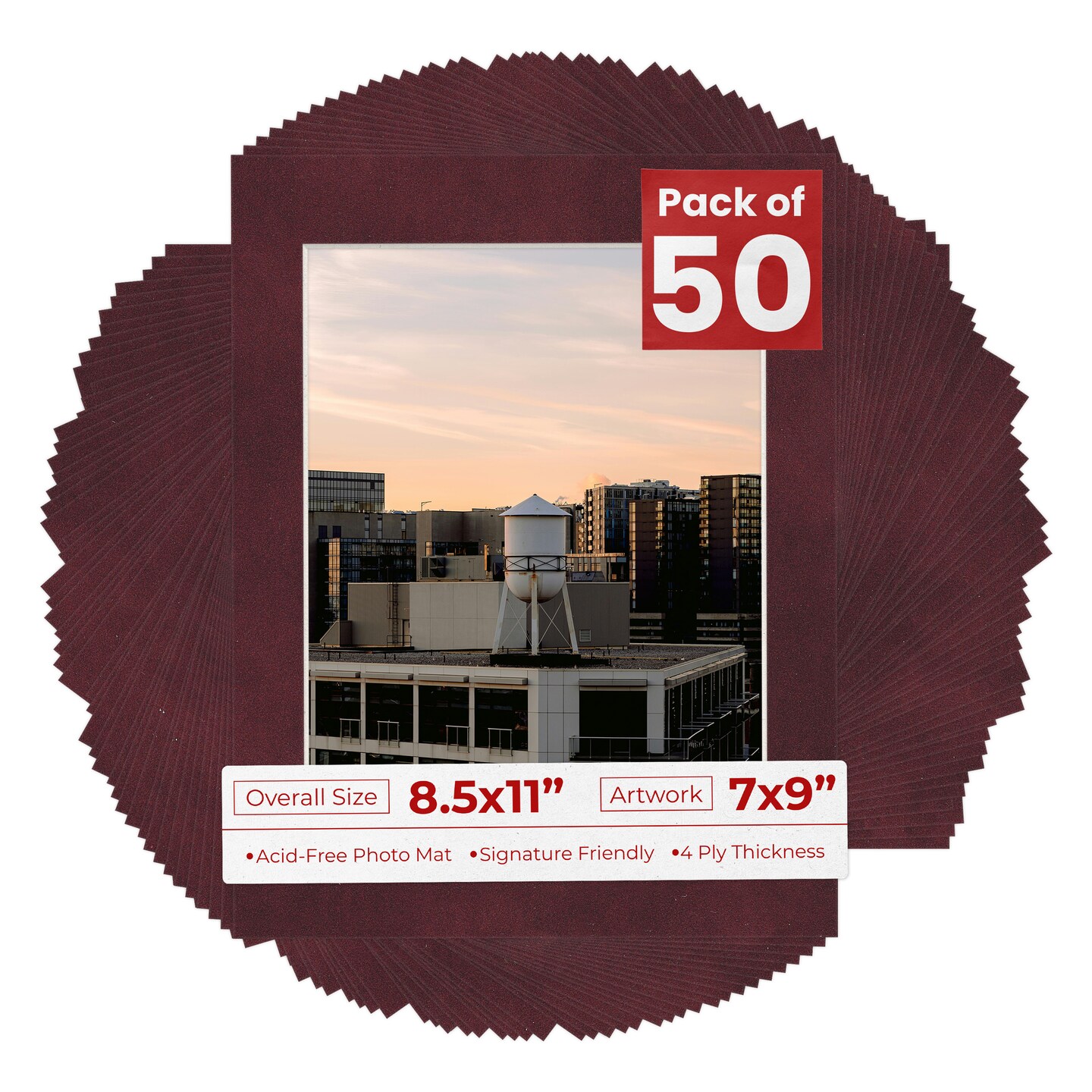 Dark Red Suede Mat Board for 8.5x11 Frames - Fits 7x9 Photos