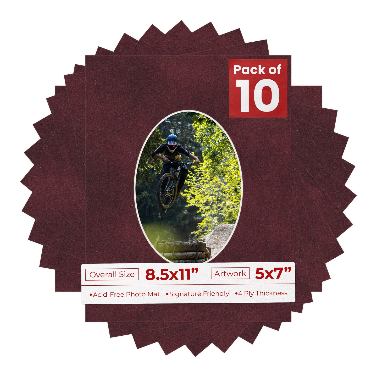 Dark Red Suede Mat Board for 8.5x11 Frames - Oval Opening for 5x7 Photos