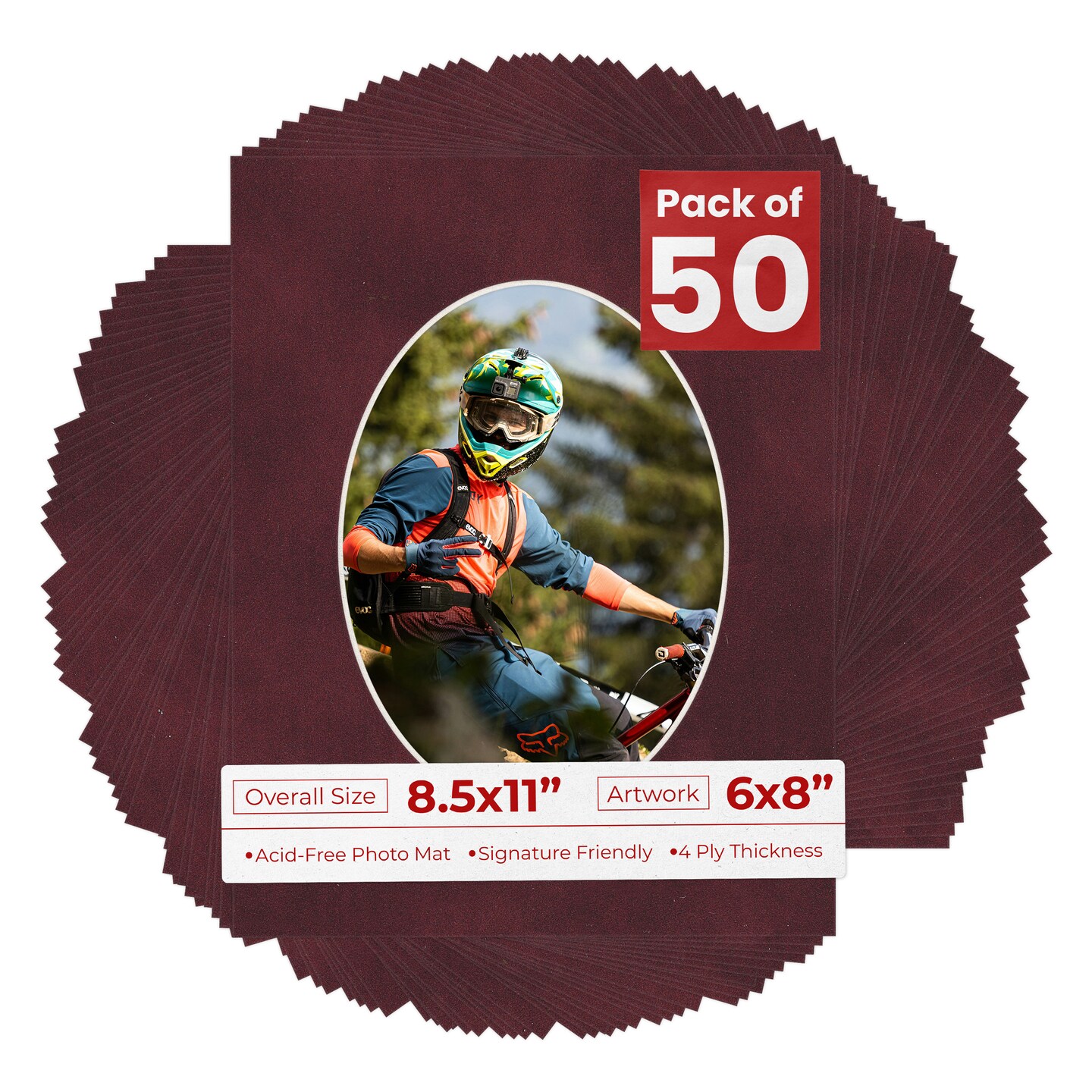 Dark Red Suede Mat Board for 8.5x11 Frames - Oval Opening for 6x8 Photos