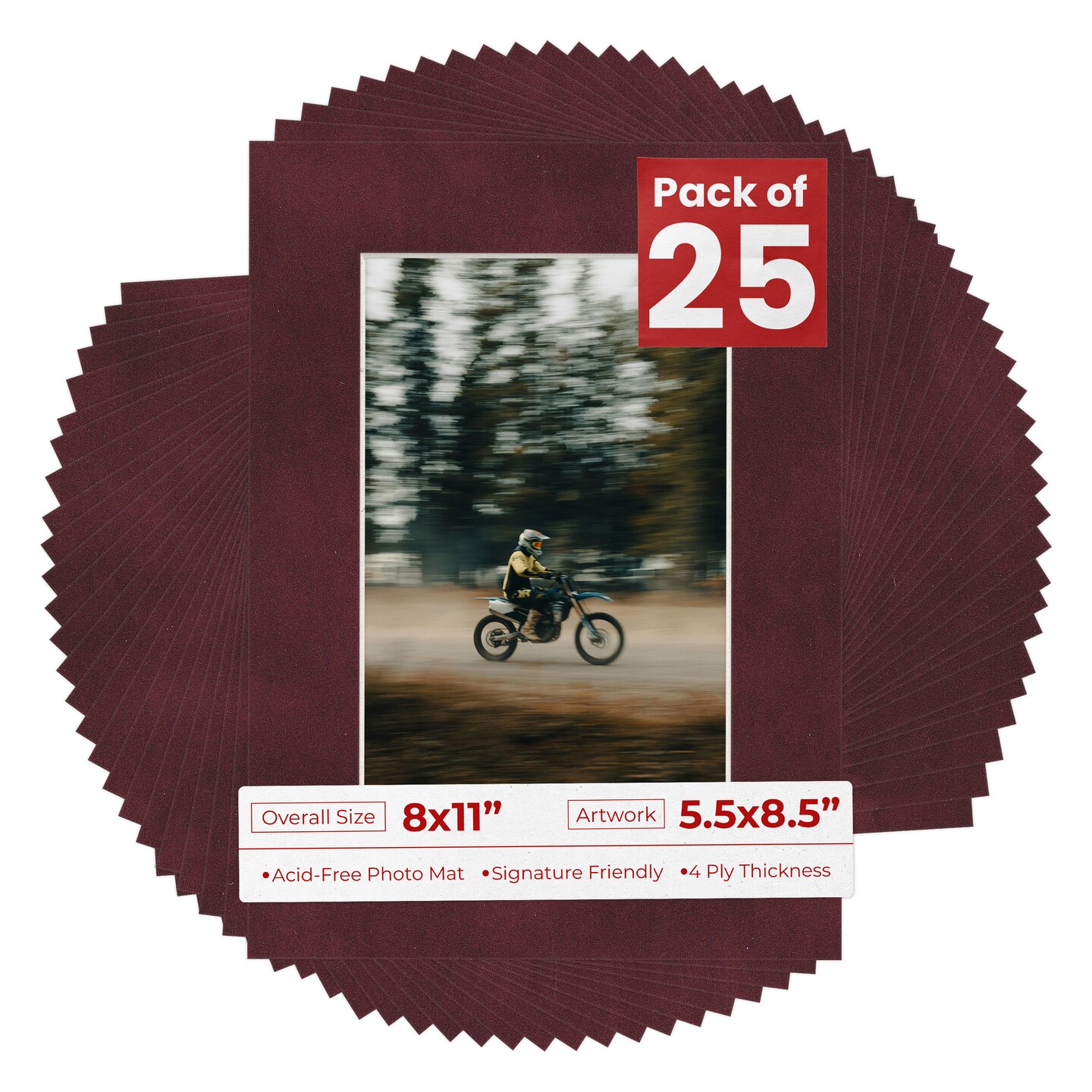 Dark Red Suede Mat Board for 8x11 Frames - Fits 5.5x8.5 Photos