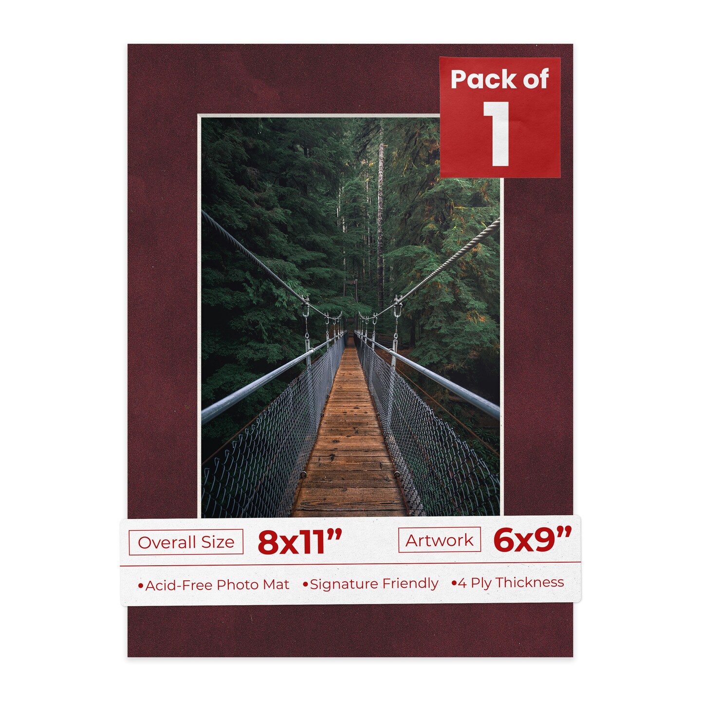 Dark Red Suede Mat Board for 8x11 Frames - Fits 6x9 Photos