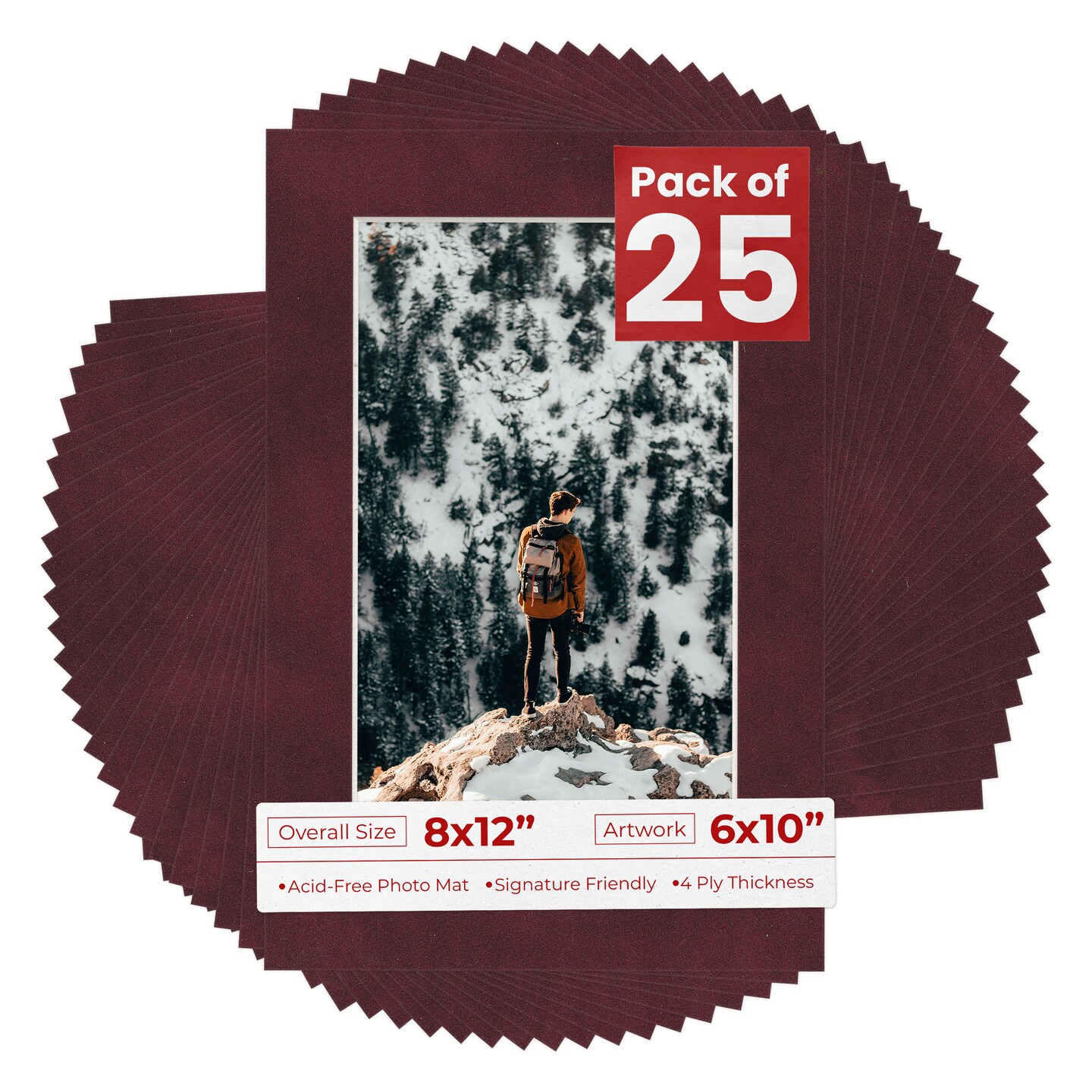 Dark Red Suede Mat Board for 8x12 Frames - Fits 6x10 Photos