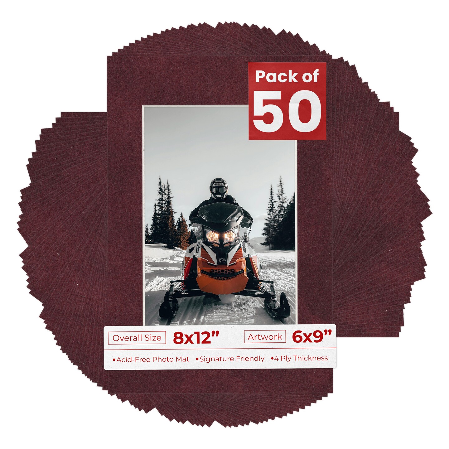 Dark Red Suede Mat Board for 8x12 Frames - Fits 6x9 Photos