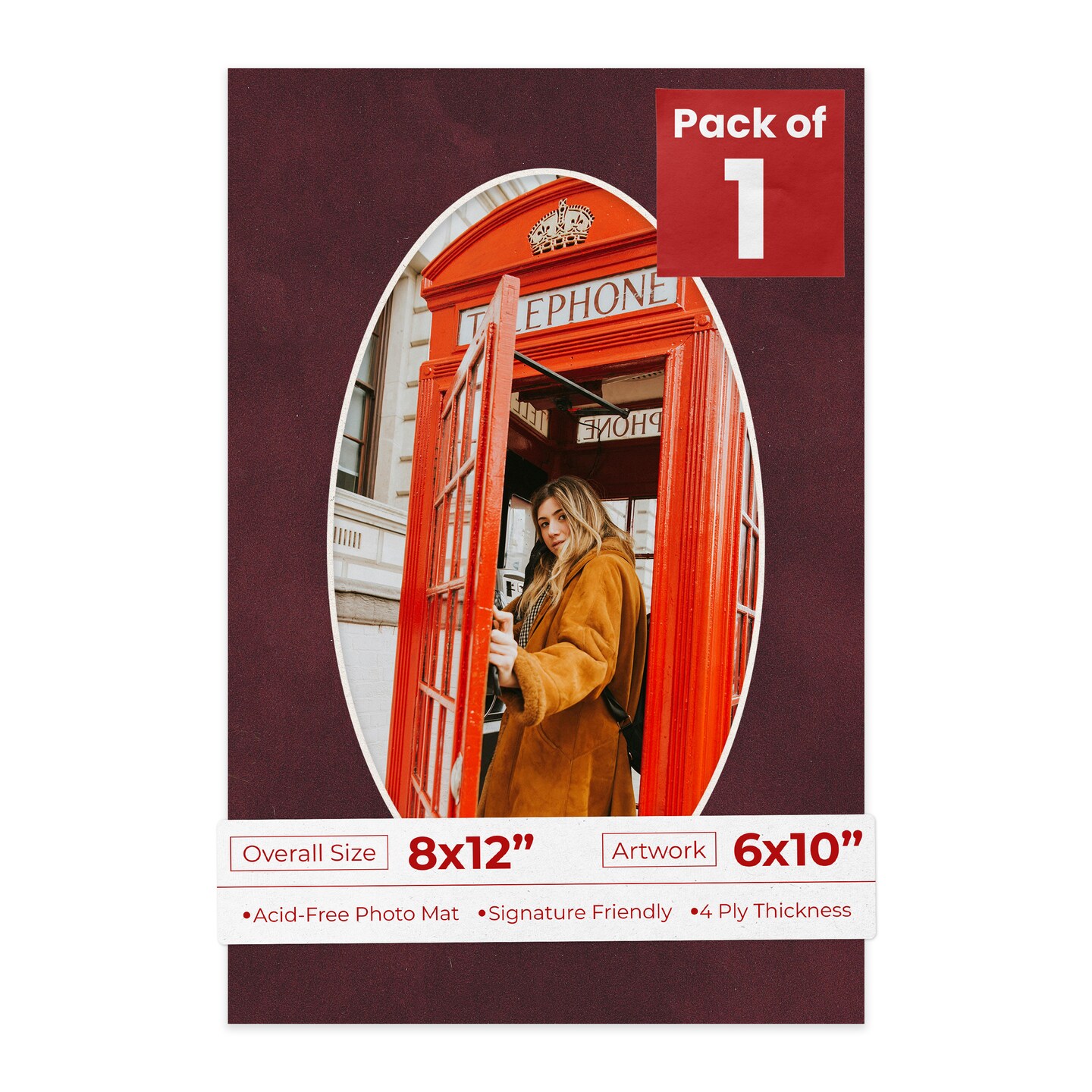 Dark Red Suede Mat Board for 8x12 Frames - Oval Opening for 6x10 Photos