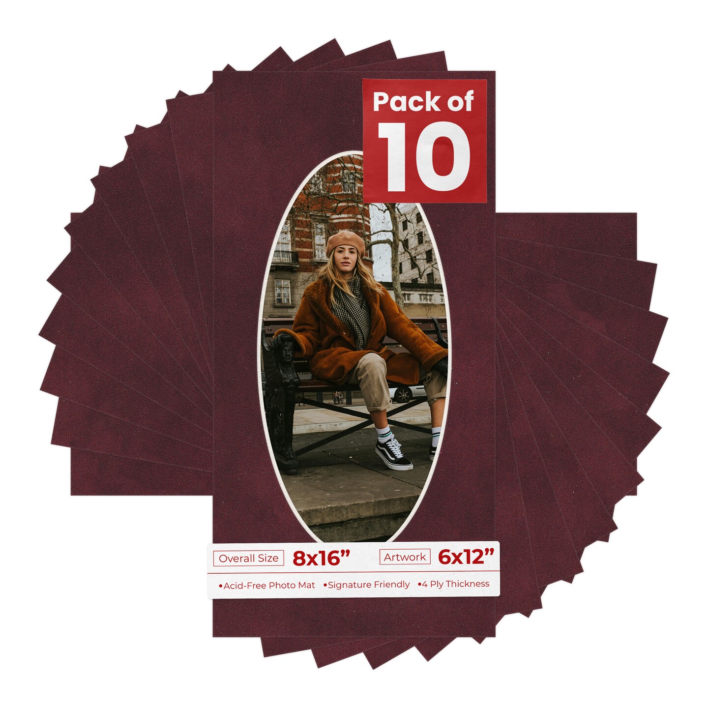 Dark Red Suede Mat Board for 8x16 Frames - Oval Opening for 6x12 Photos