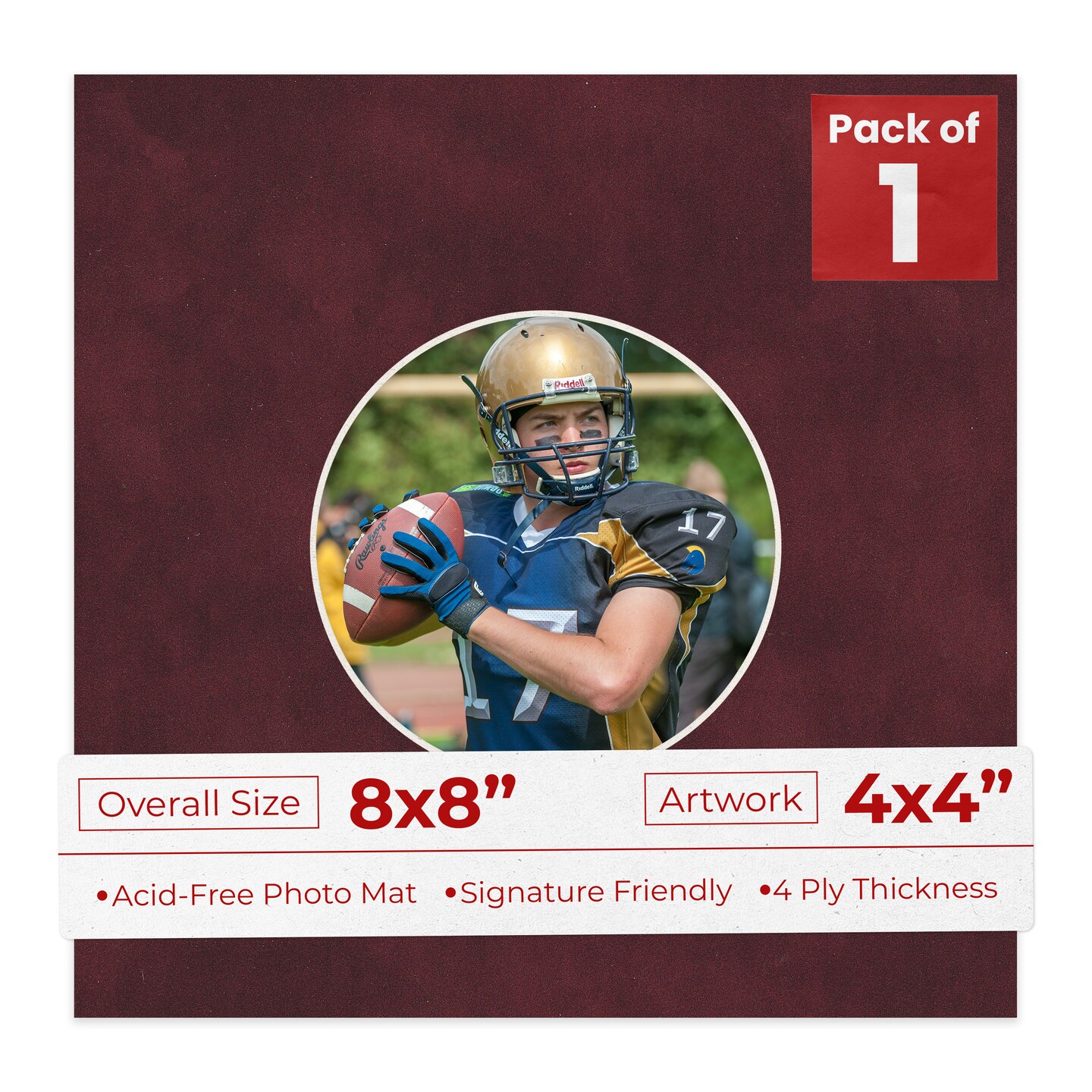 Dark Red Suede Mat Board for 8x8 Frames - Circle Opening for 4x4 Photos