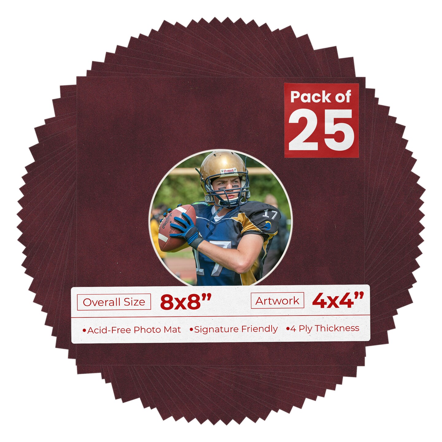 Dark Red Suede Mat Board for 8x8 Frames - Circle Opening for 4x4 Photos