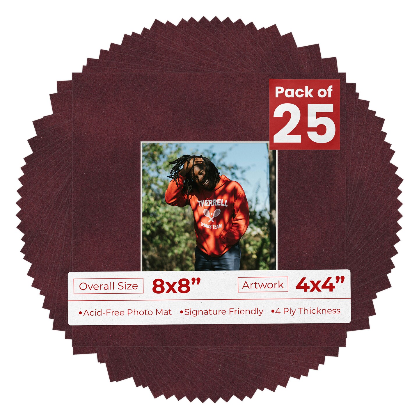 Dark Red Suede Mat Board for 8x8 Frames - Fits 4x4 Photos