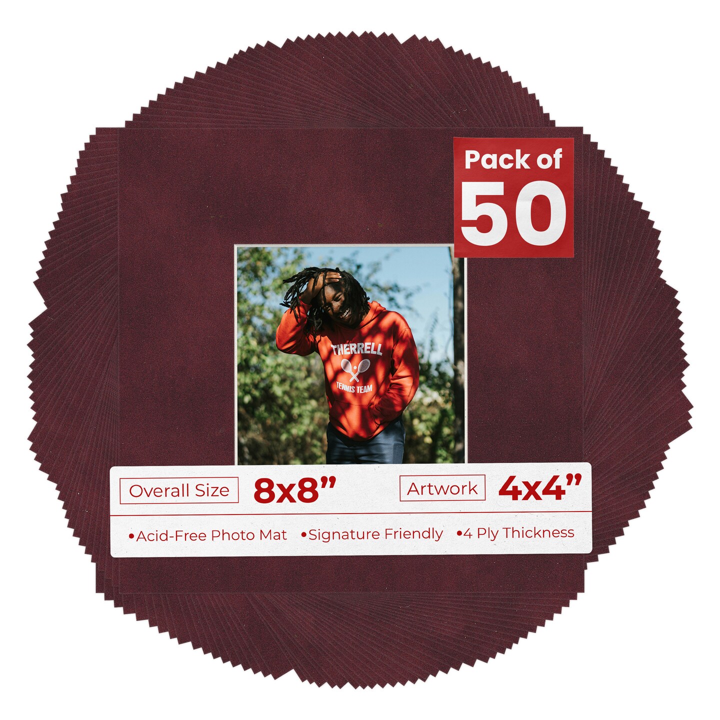 Dark Red Suede Mat Board for 8x8 Frames - Fits 4x4 Photos
