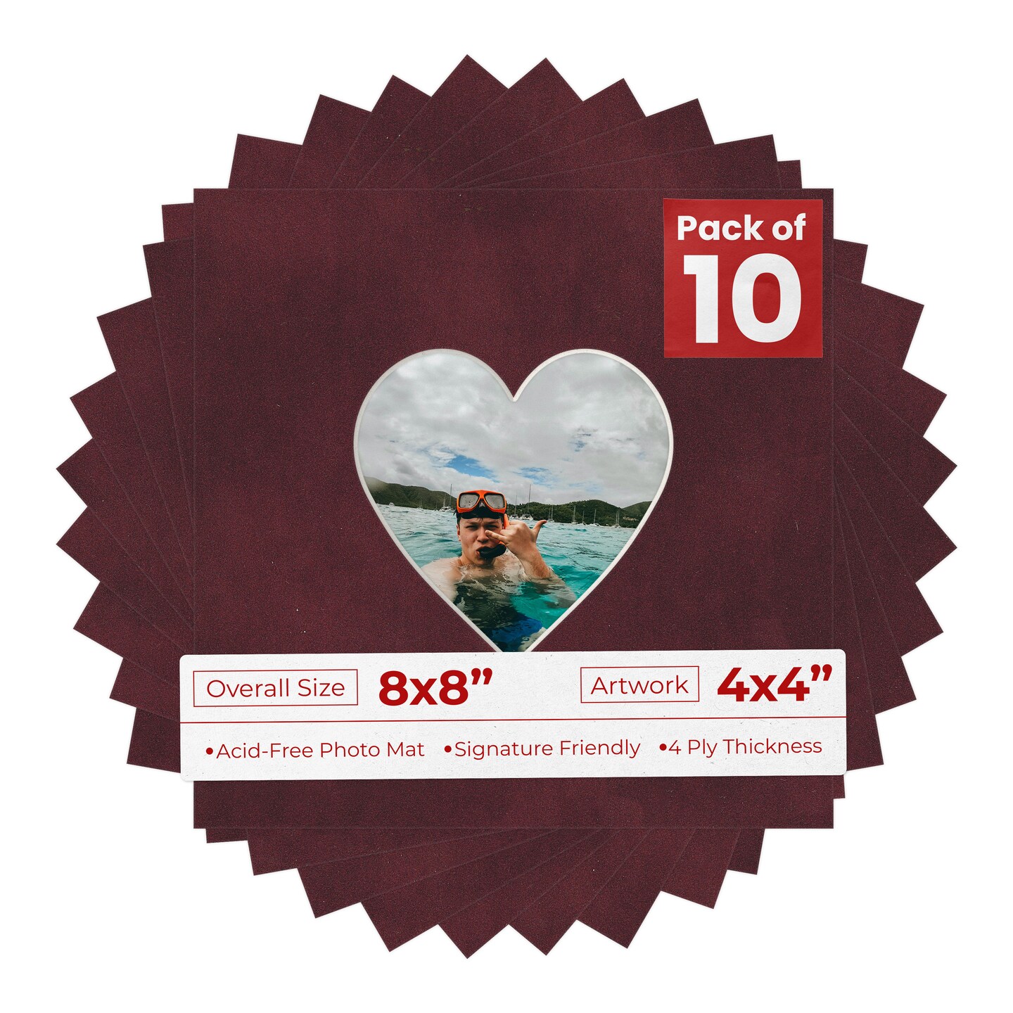 Dark Red Suede Mat Board for 8x8 Frames - Heart Opening for 4x4 Photos