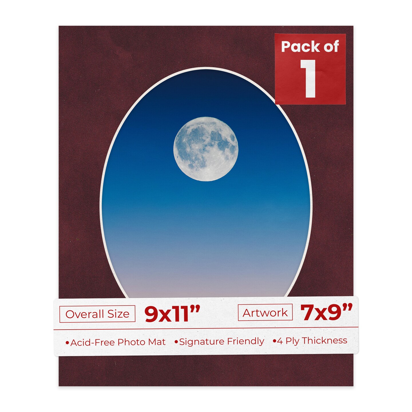 Dark Red Suede Mat Board for 9x11 Frames - Oval Opening for 7x9 Photos