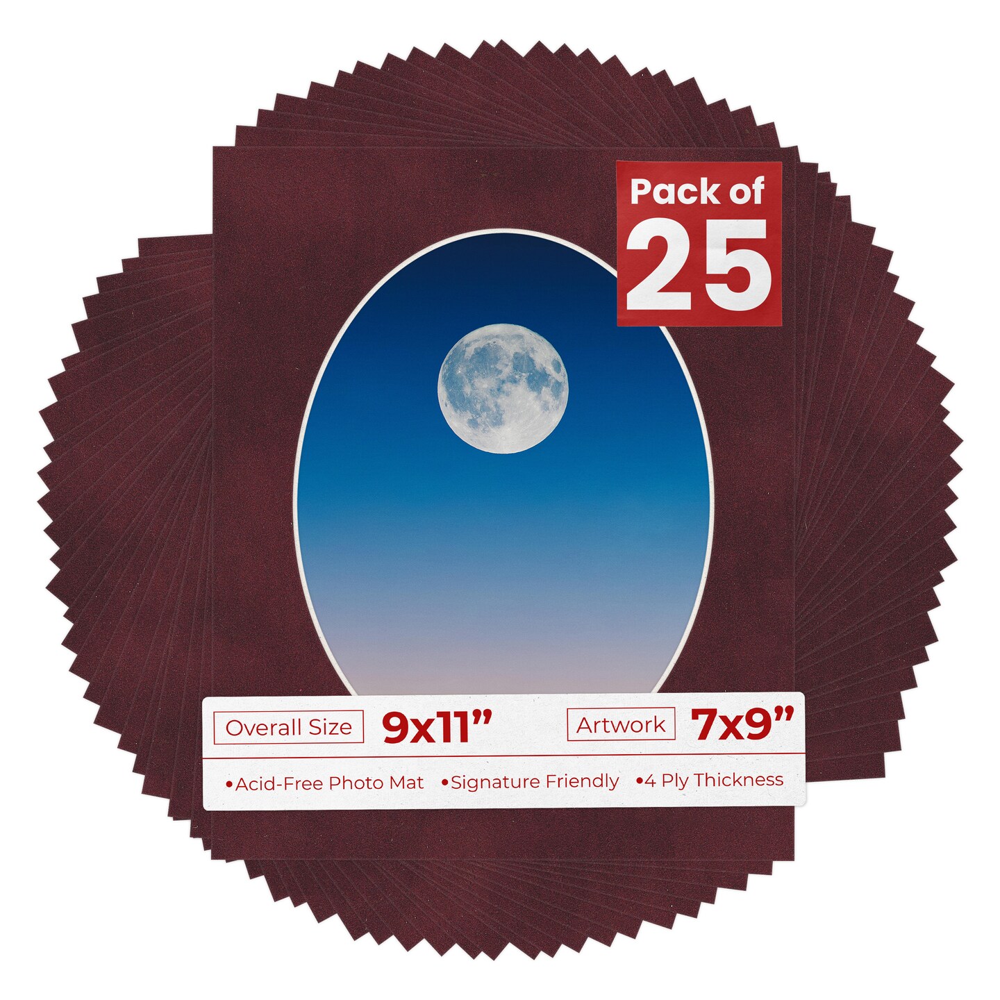 Dark Red Suede Mat Board for 9x11 Frames - Oval Opening for 7x9 Photos
