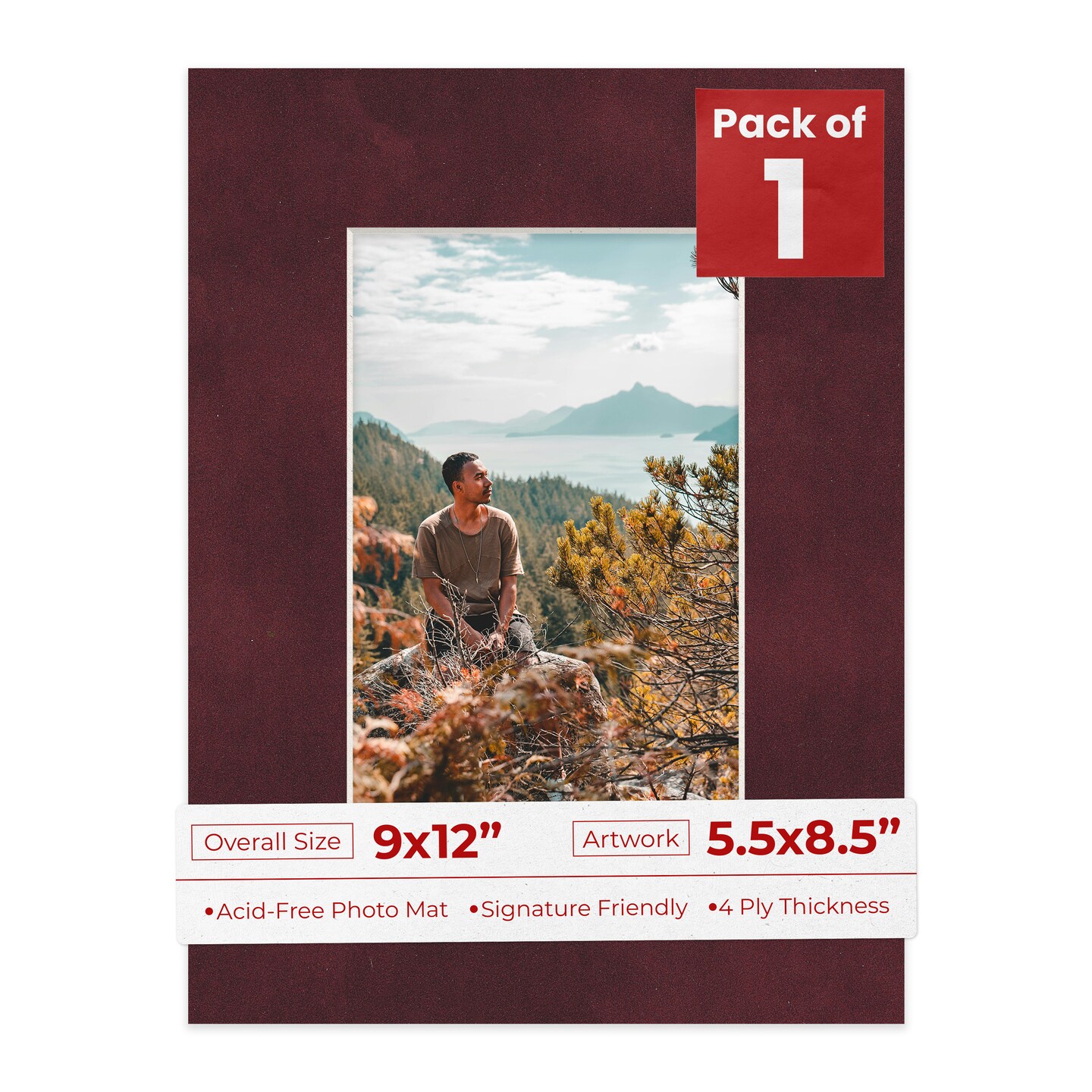 Dark Red Suede Mat Board for 9x12 Frames - Fits 5.5x8.5 Photos