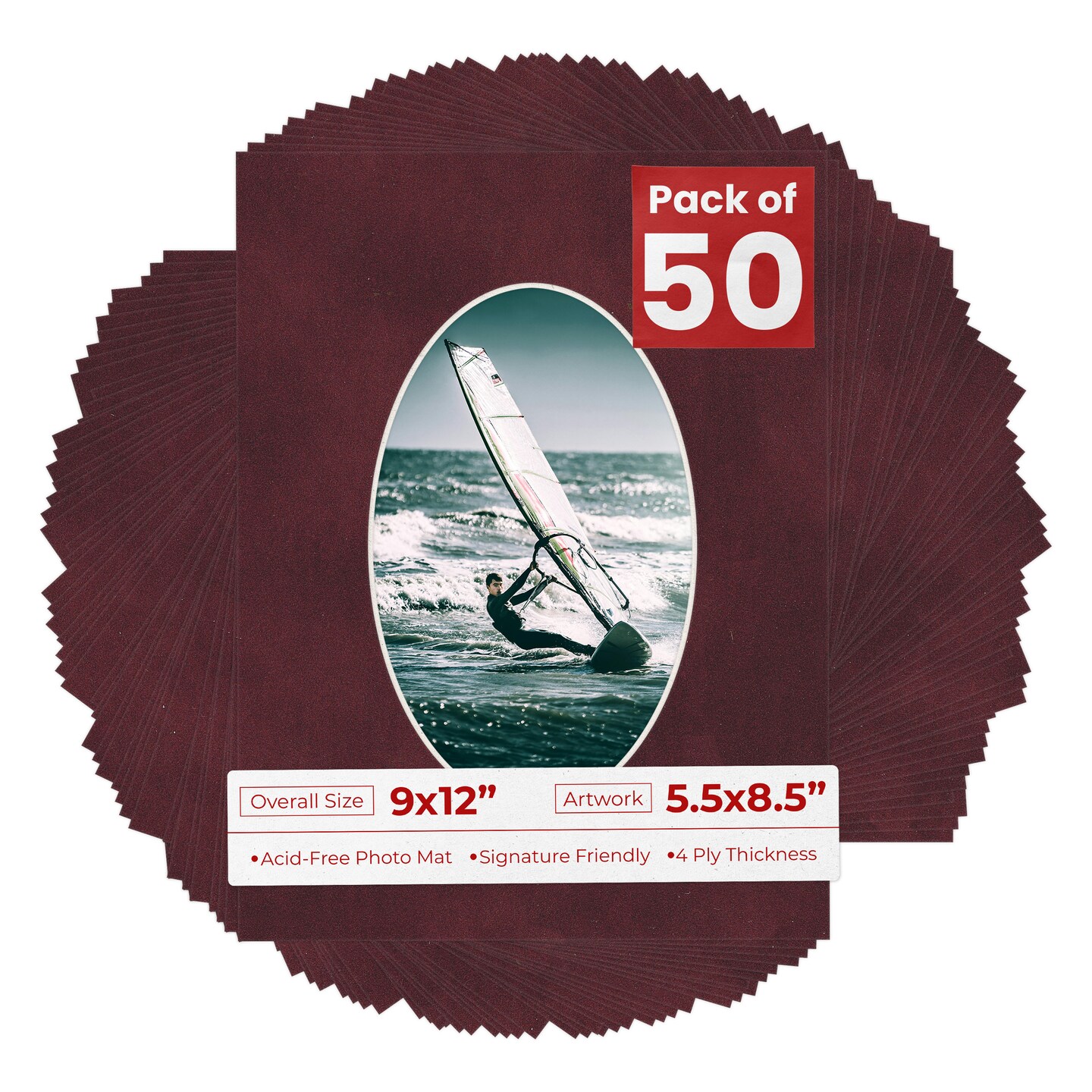 Dark Red Suede Mat Board for 9x12 Frames - Oval Opening for 5.5x8.5 Photos