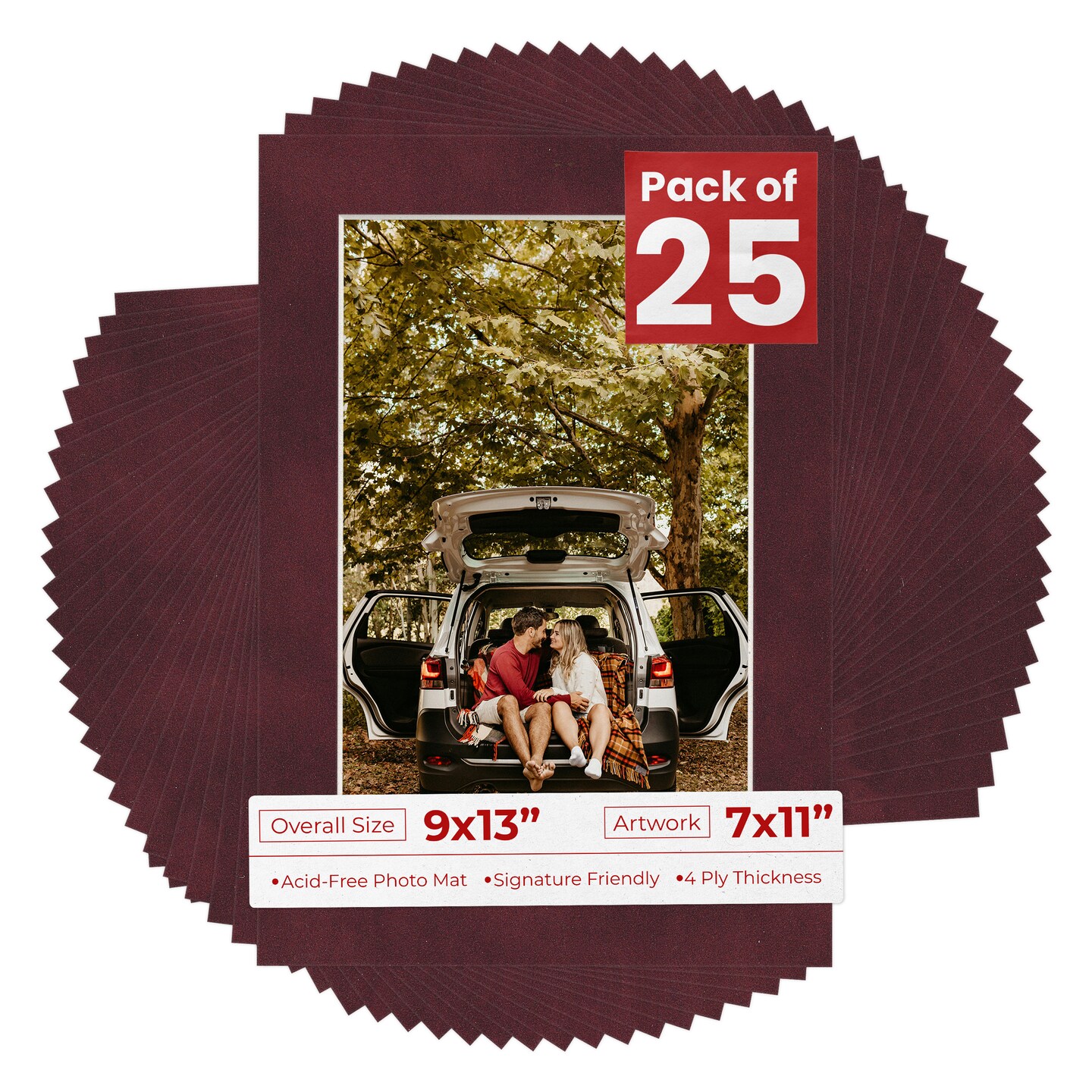 Dark Red Suede Mat Board for 9x13 Frames - Fits 7x11 Photos