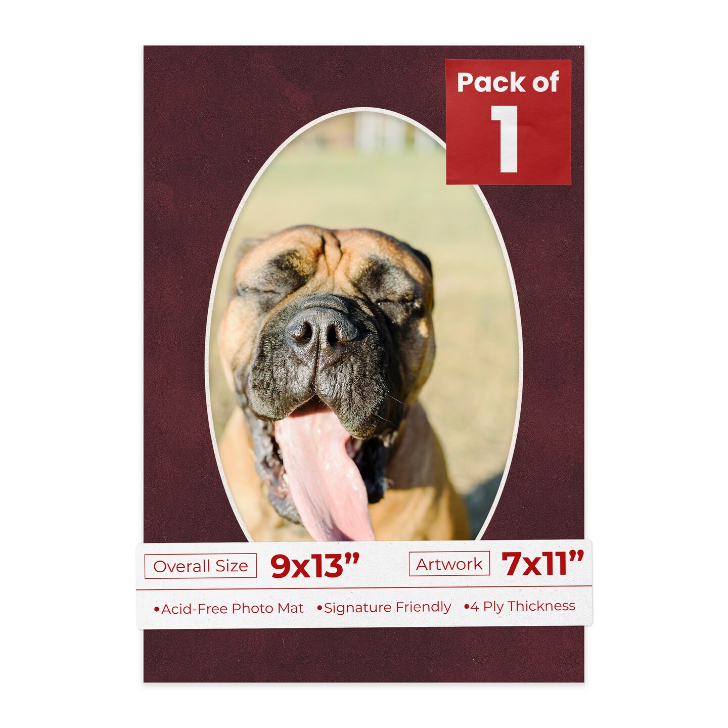 Dark Red Suede Mat Board for 9x13 Frames - Oval Opening for 7x11 Photos