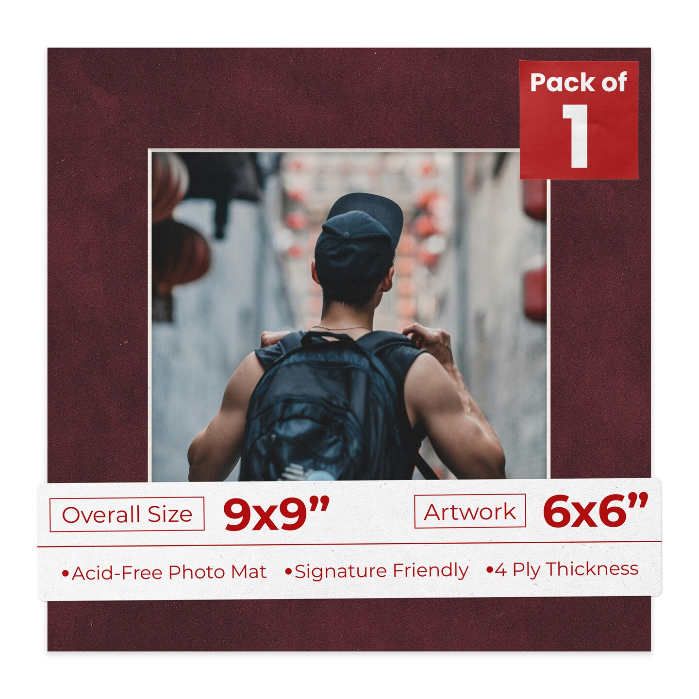 Dark Red Suede Mat Board for 9x9 Frames - Fits 6x6 Photos