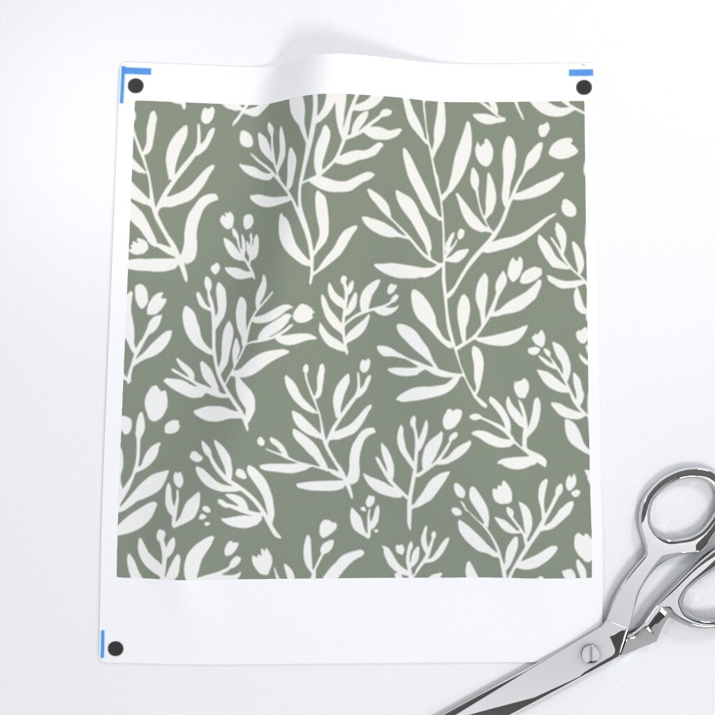 Dark Sage Green Botanical Garden Small Scale White Modern Boho Custom Printed Fabric by Spoonflower Various Fabrics by the Yard or Fat Quarter