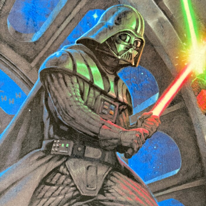 Darth Vader Luke Skywalker Lightsaber Battle Star Wars by Thomas Kinkade Licensed by David Textiles Silky Premium Fleece No-Sew Throw Fleece Fabric Kit (50x60)