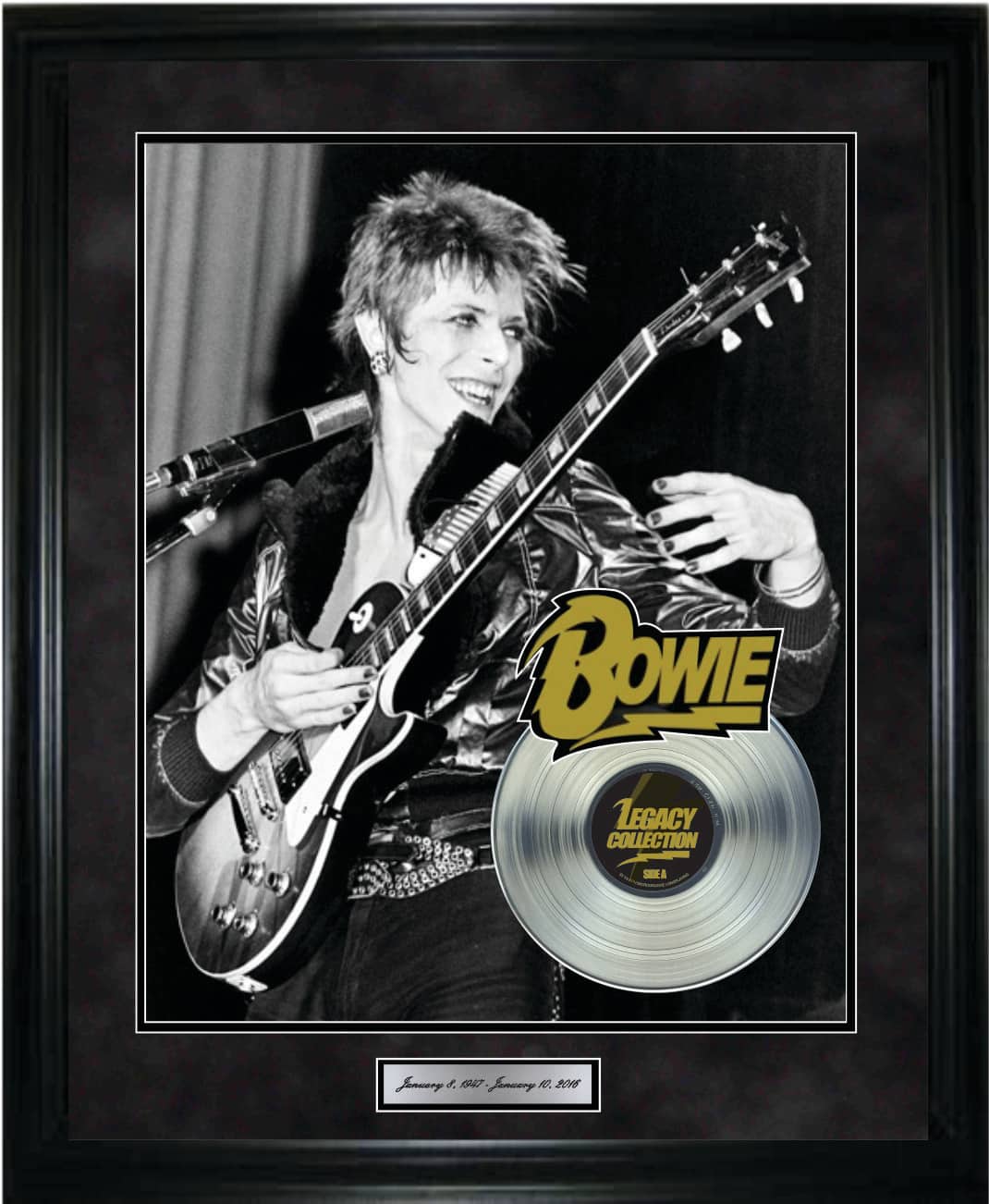 David Bowie Playing Guitar Framed With Platinum LP 32.5" x 36.5"