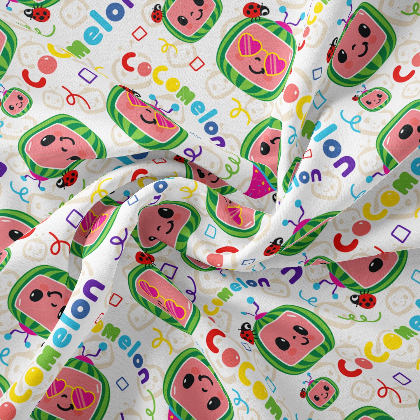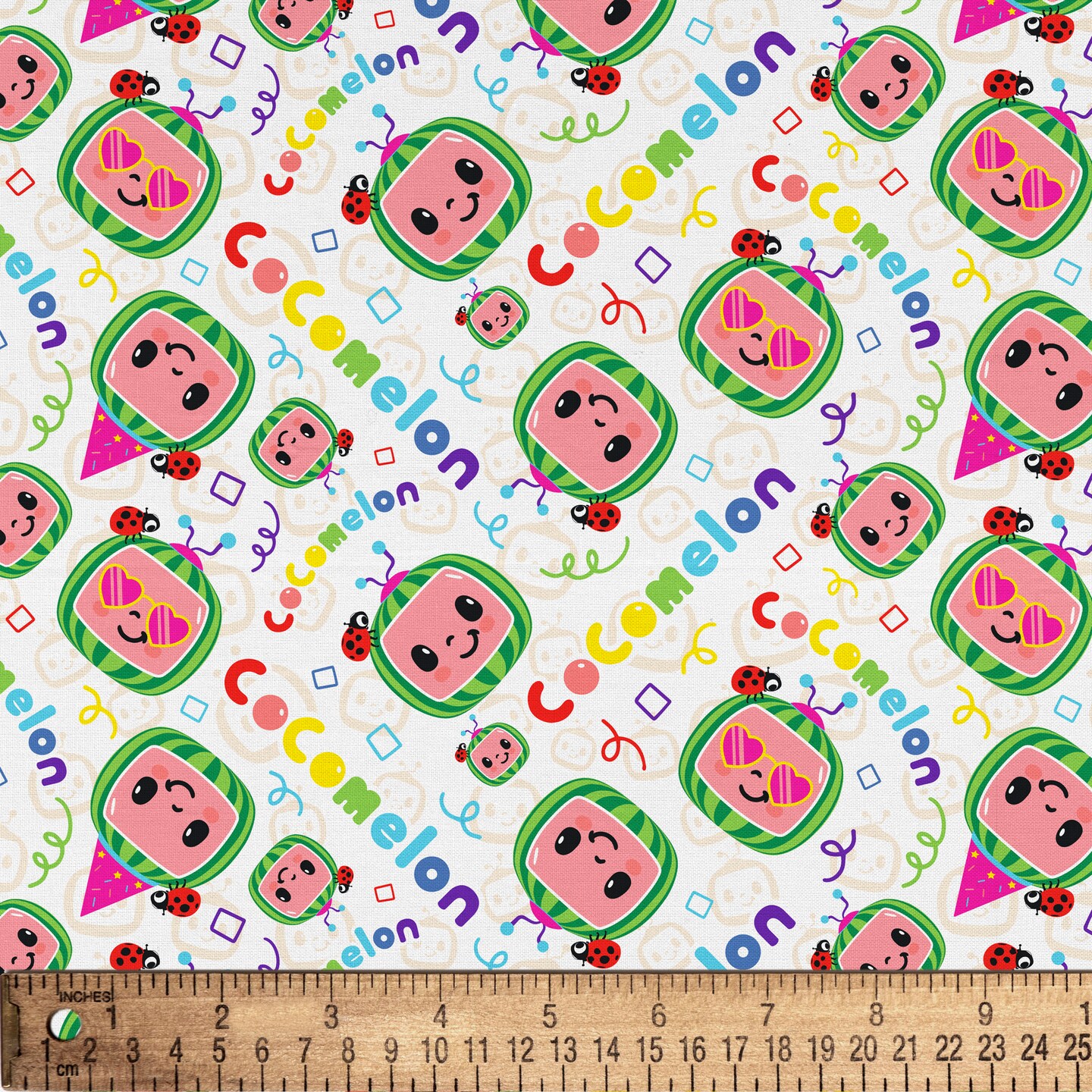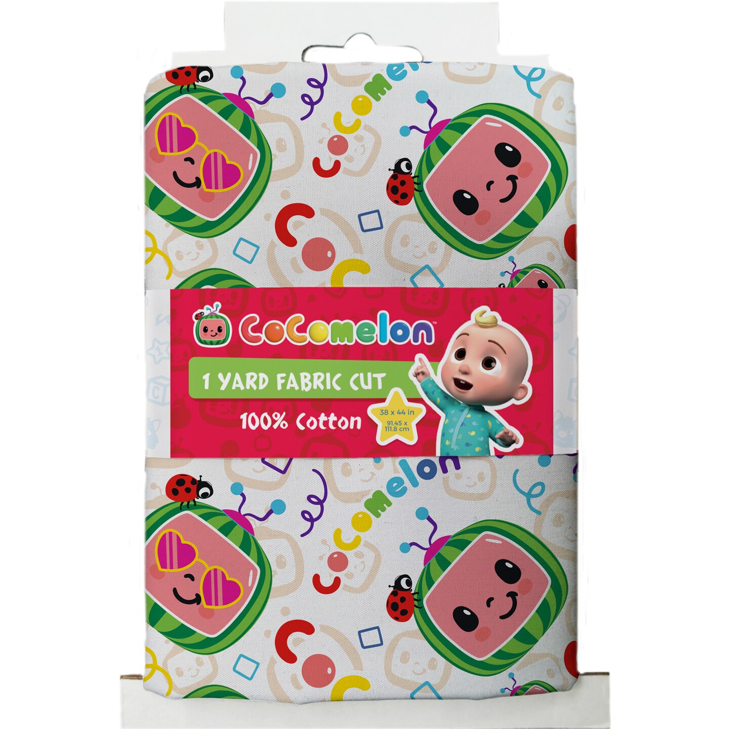 DAVID TEXTILES COCOMELON ON WHITE 1 YD COTTON FABRIC CUT