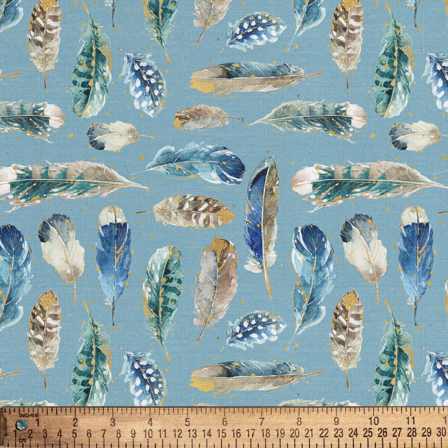 DAVID TEXTILES FEATHERS SLATE COTTON 1 YD CUT
