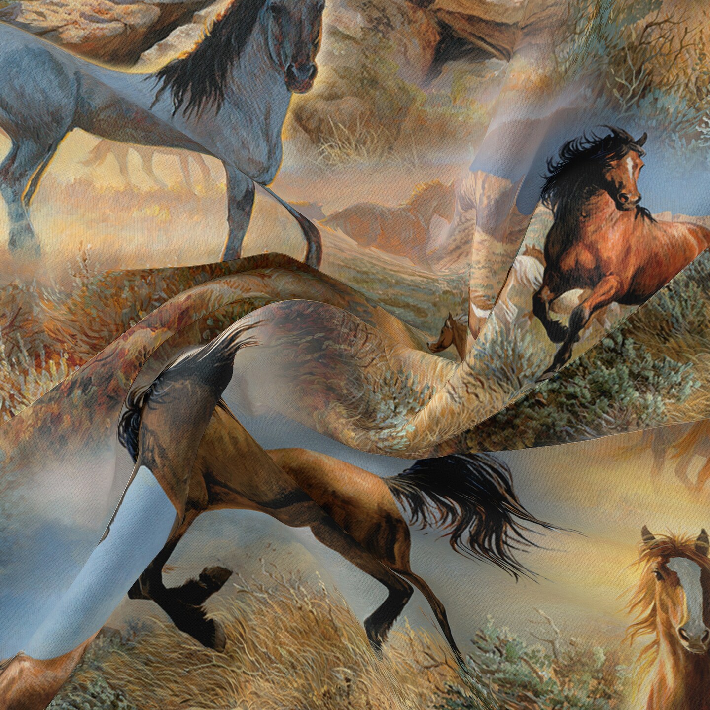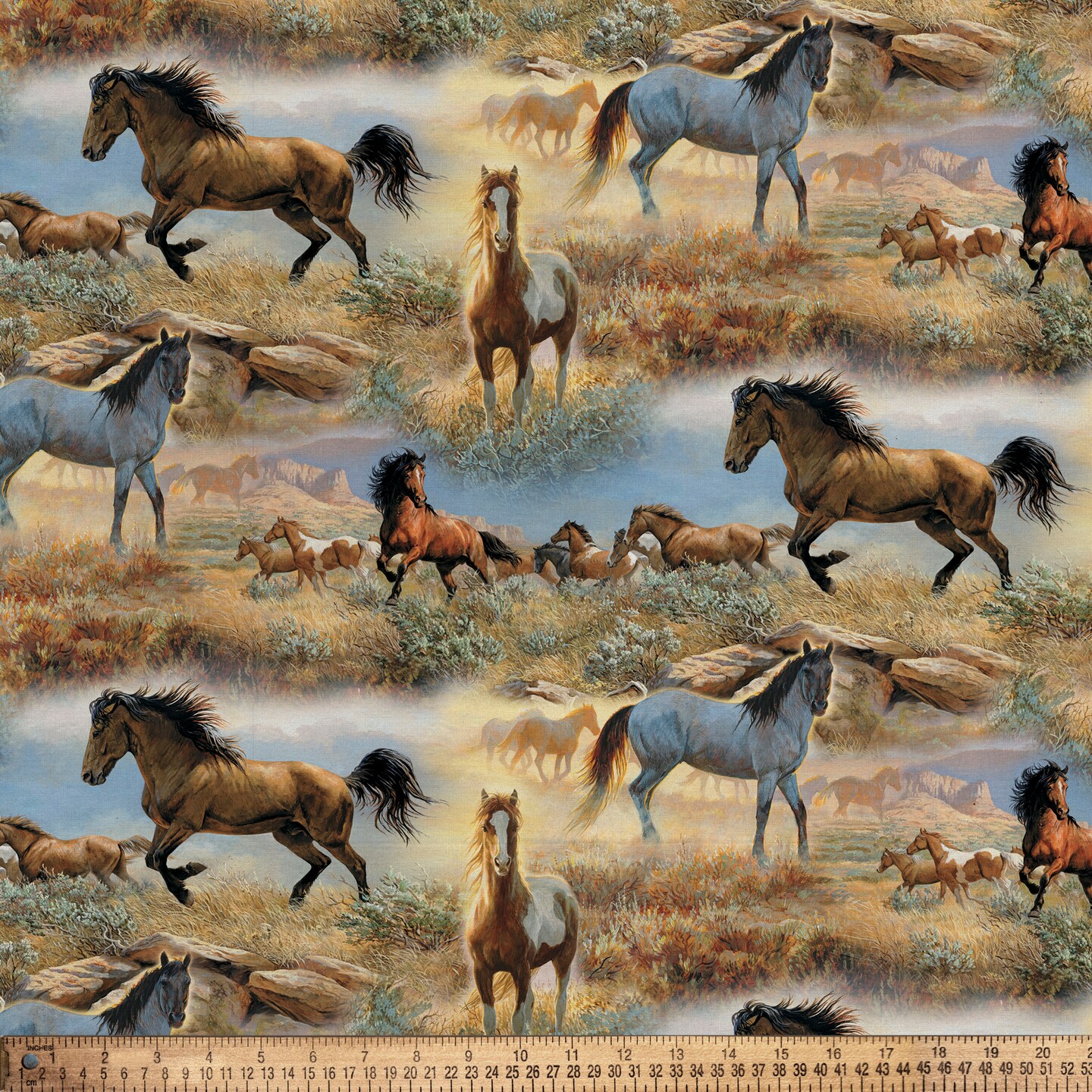 DAVID TEXTILES HORSE IN THE PRAIRIE COTTON 8 YD BOLT