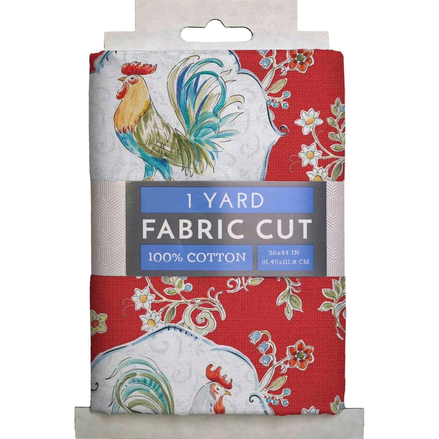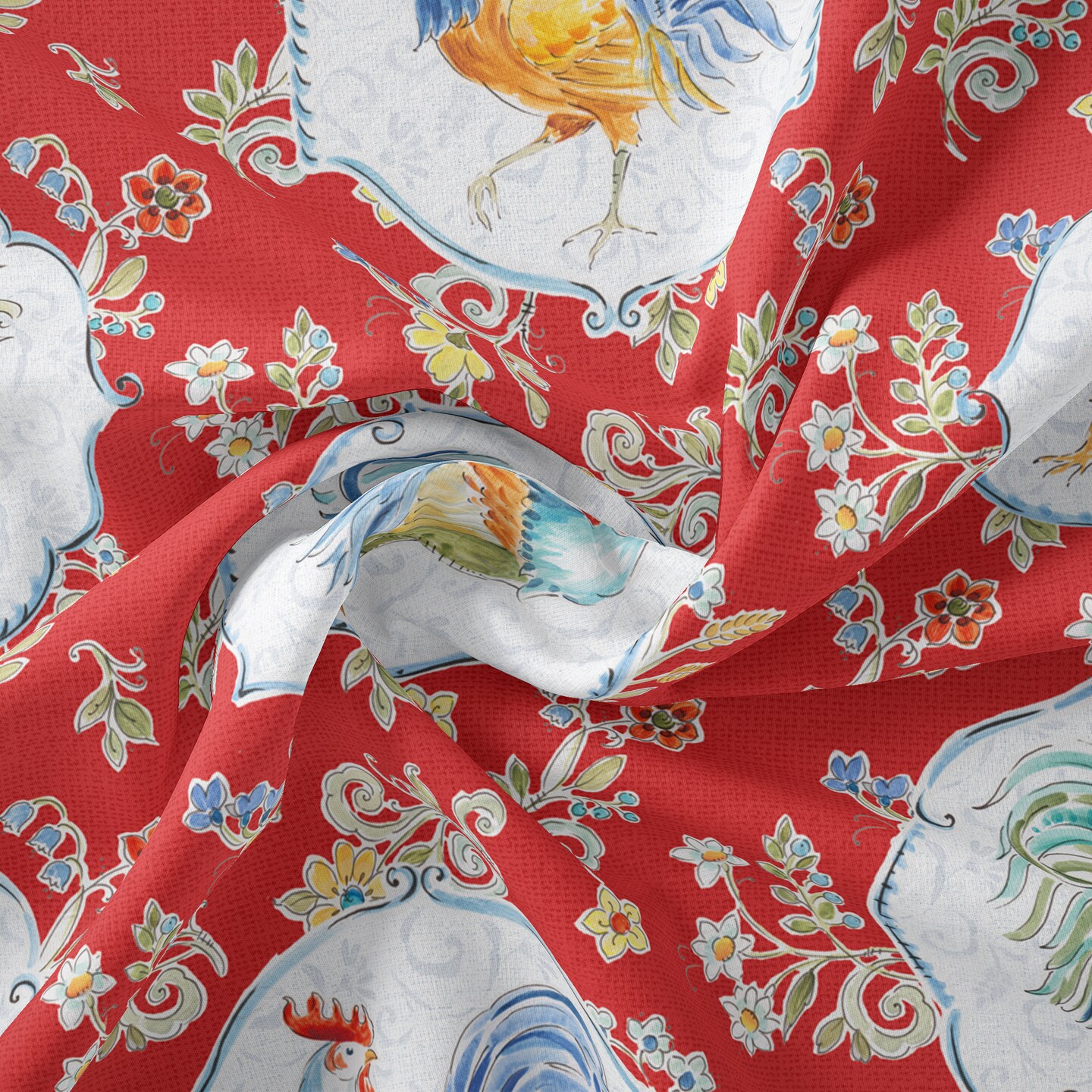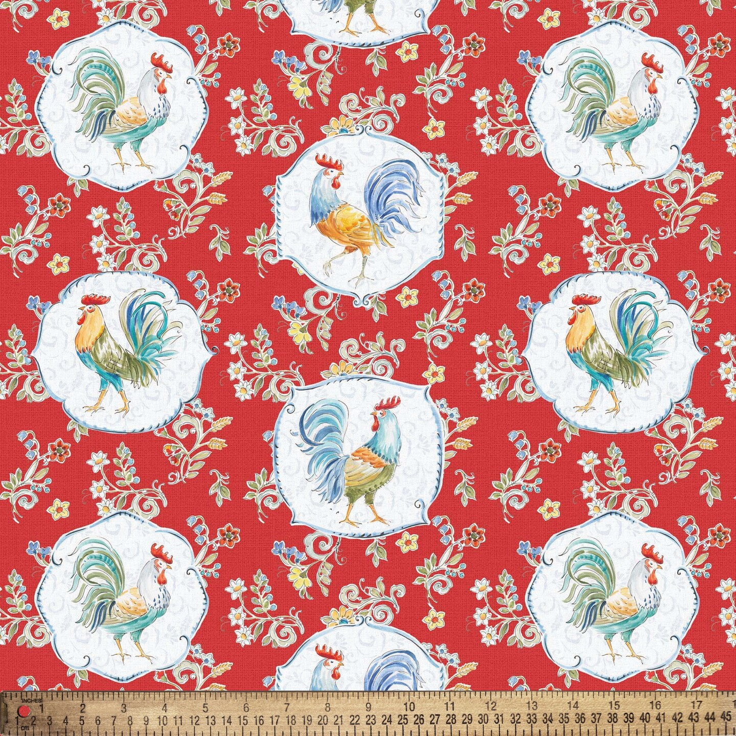 DAVID TEXTILES MORNING BLOOM ROOSTER RED COTTON 1 YD CUT