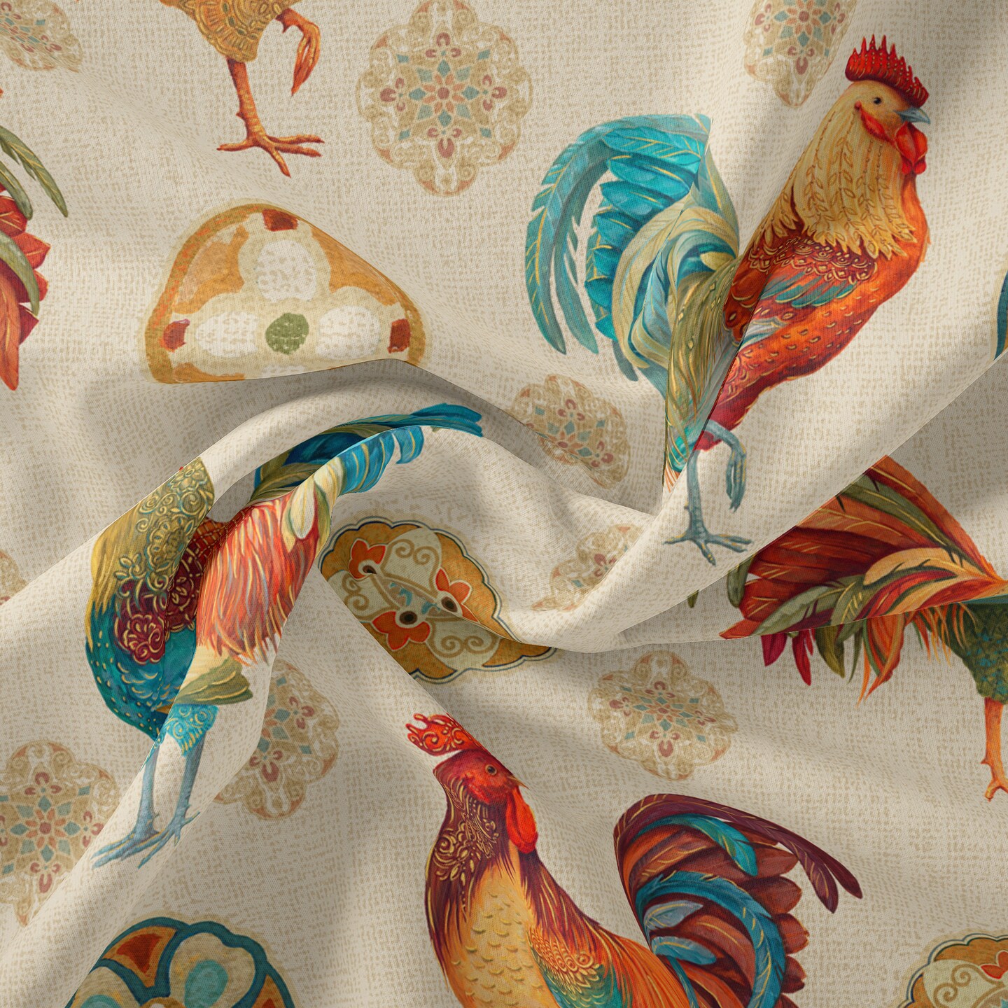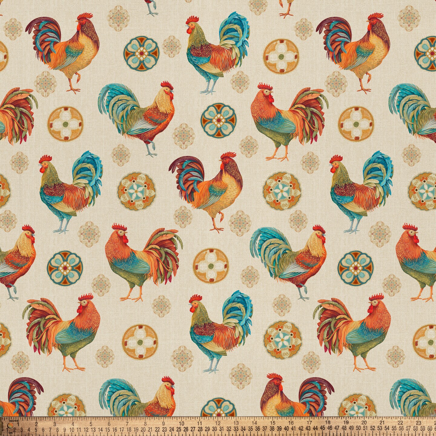 DAVID TEXTILES ROOSTER MEDALLION COTTON 1 YD CUT