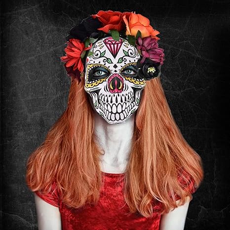 Day of the Dead Headpiece Frida Costume Mexican Floral Crown Rose Headband (Black Red Orange)