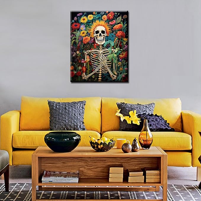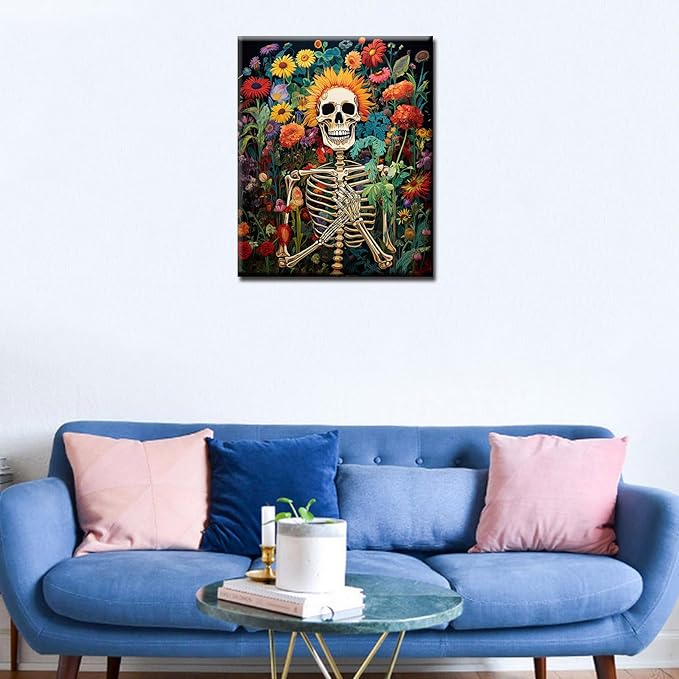 Day of The Dead Paint by Numbers for Adults Beginner Graffitic Human Skeleton DIY Paintings Acrylic Paint Canvas Girls Bedroom Decor Skull Man Painting Kits Flowers Art 16x20 Inch (Frameless )