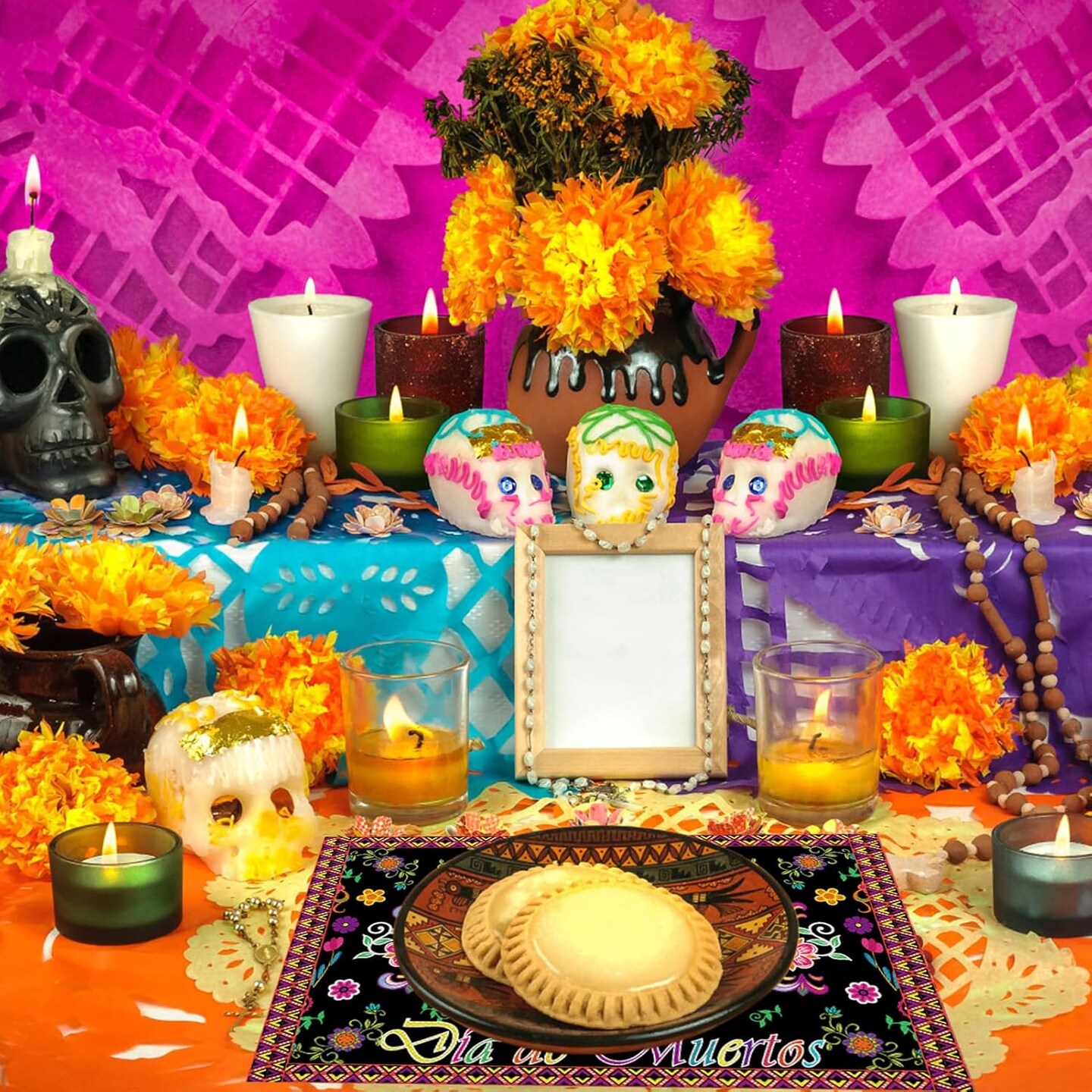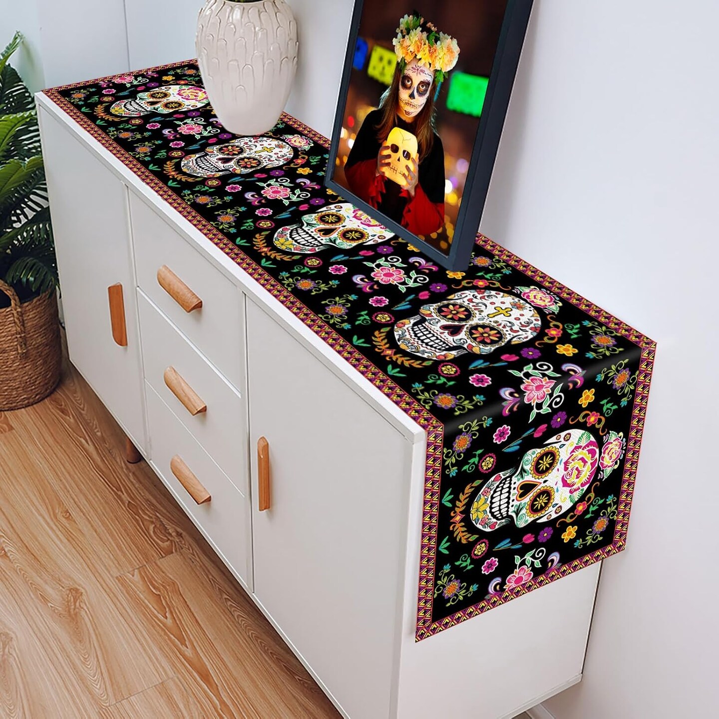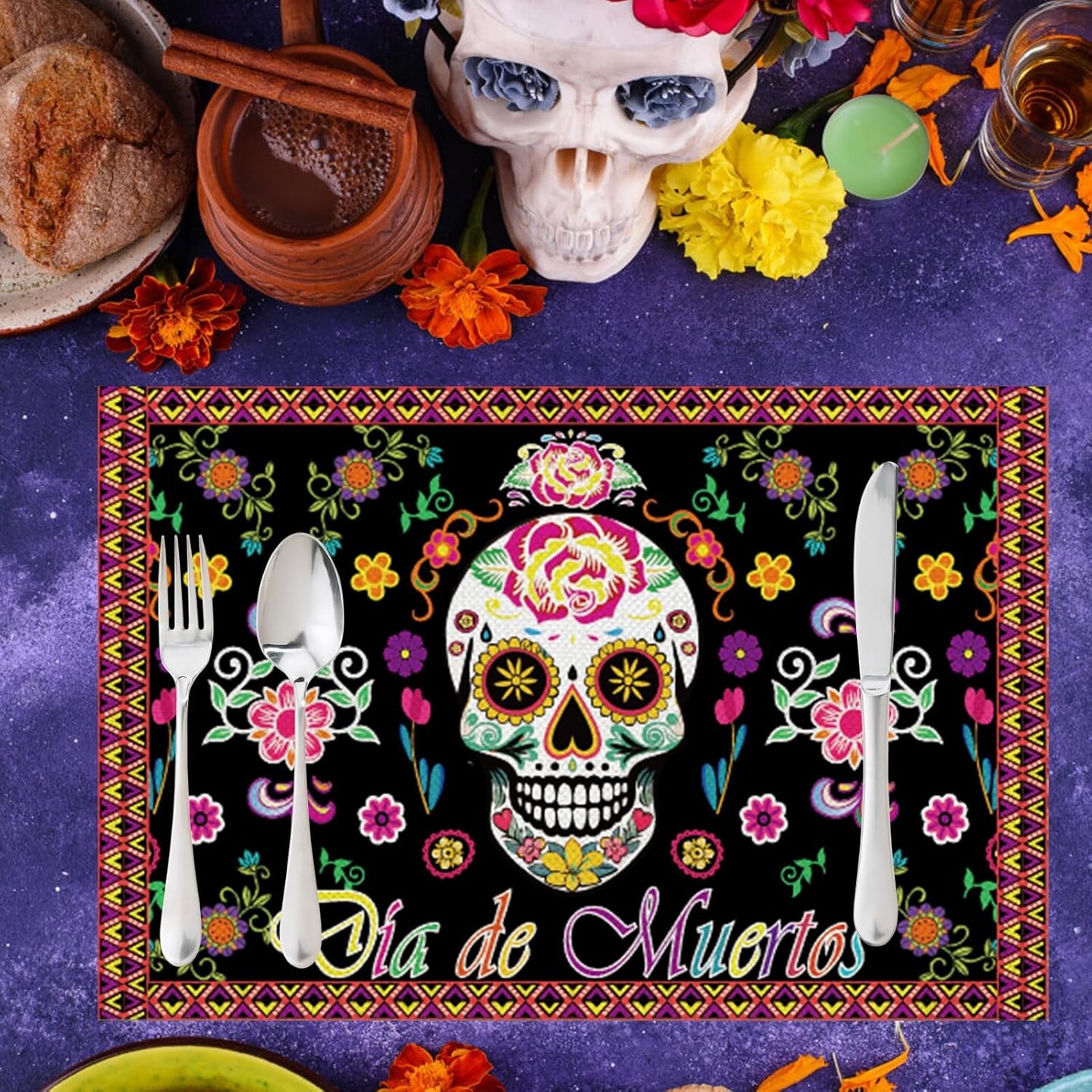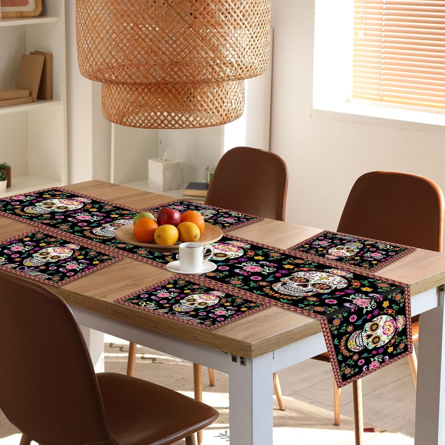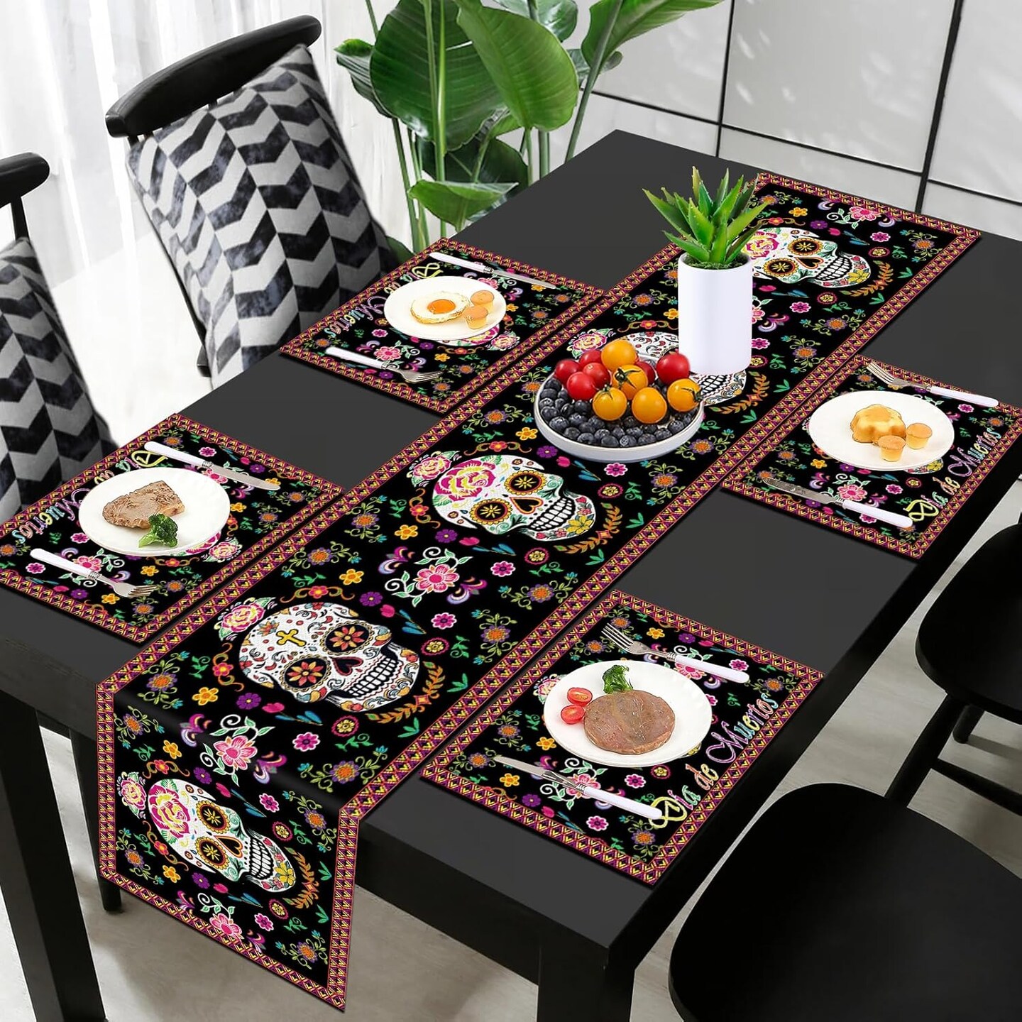 Day of The Dead Table Runner with Day of the Dead Place Mat for Day of the Dead Party Decorations