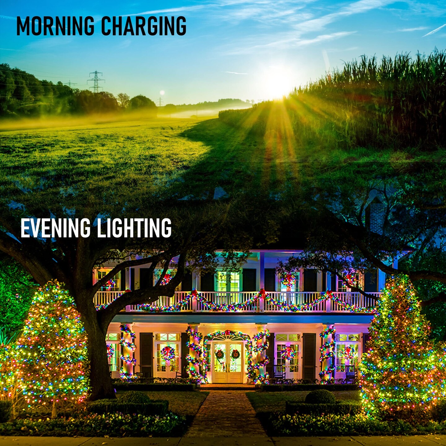 Dazzle Bright 2 Pack Total 400LED 132FT Multi-Colored Christmas Solar String Outdoor Lights, Solar Powered with 8 Modes Waterproof Fairy Lights for Bedroom Patio Garden Tree Party Yard Decoration