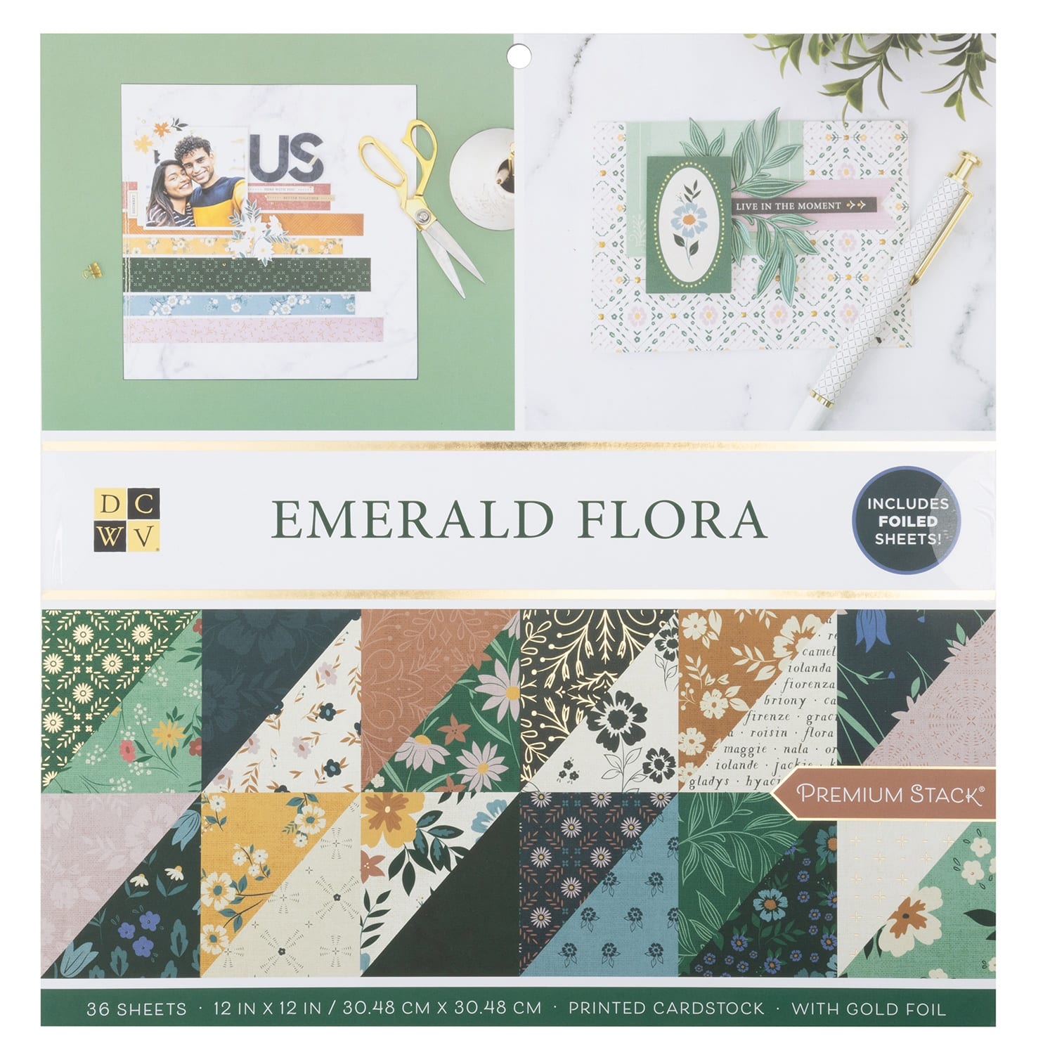 DCWV® 12" x 12" Premium Paper Emerald Flora, 36 Sheets