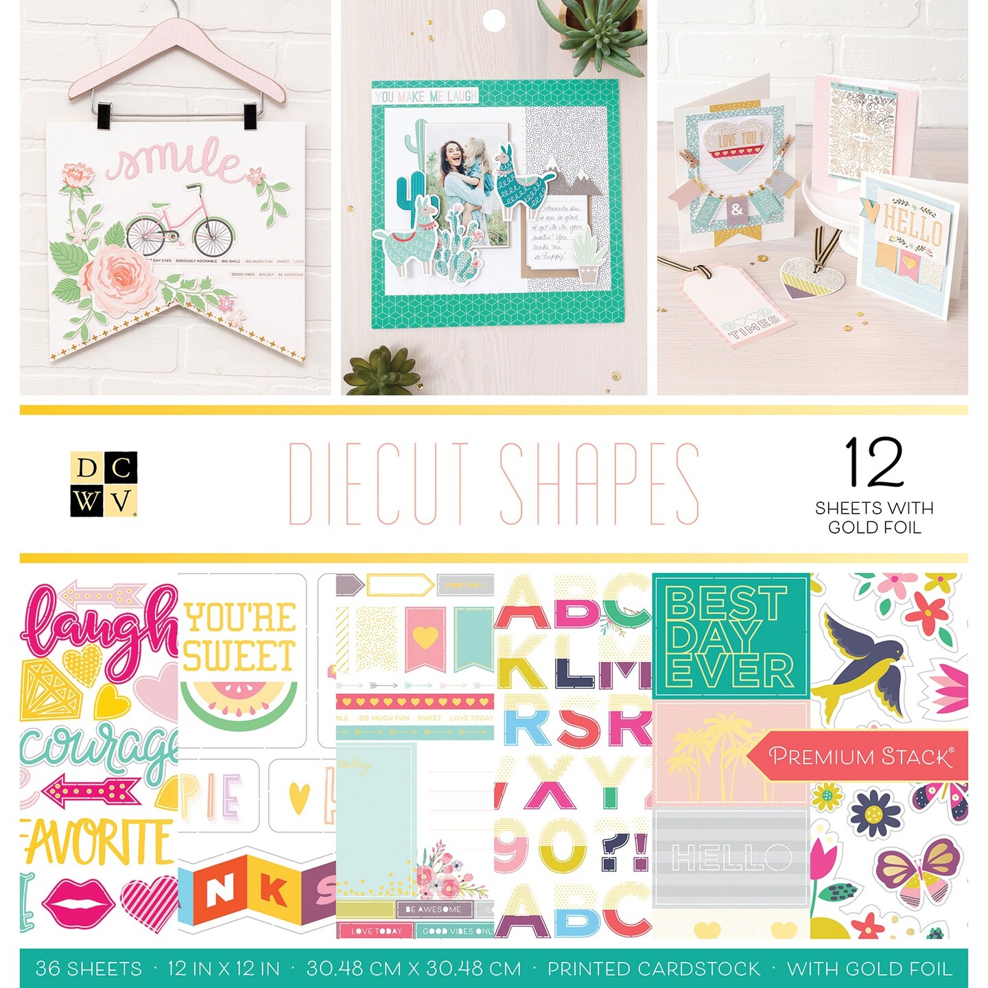 DCWV Double-Sided Cardstock Stack 12"X12" 36/Pkg-Diecut Shapes, 12 Designs/3 Each