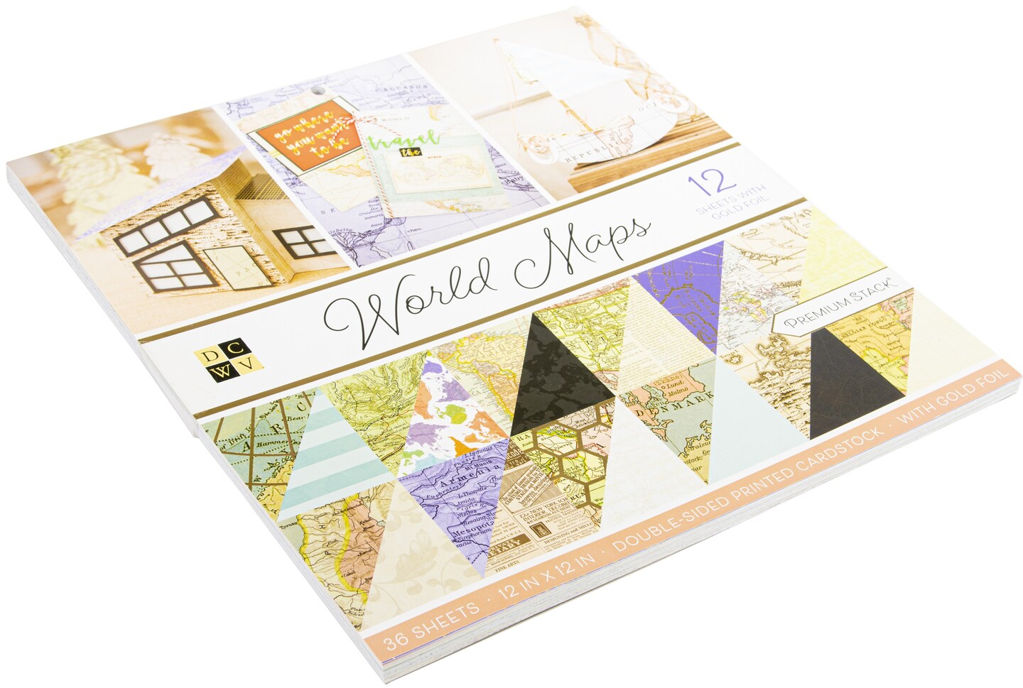 DCWV Double-Sided Cardstock Stack 12"X12" 36/Pkg-World Maps W/Foil Accents