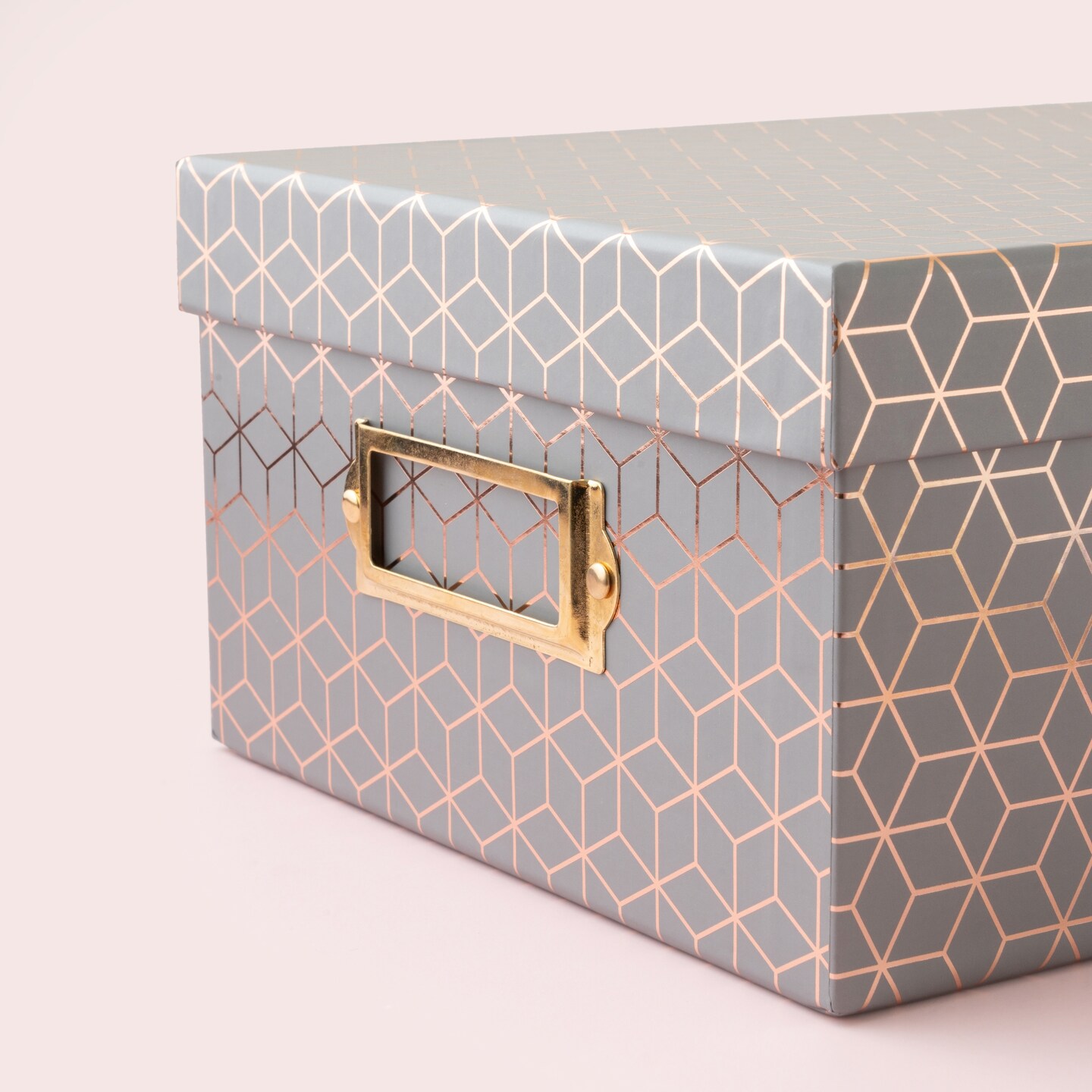 DCWV Gray Geo Photo Storage Box with Rose Gold Foil and Bookplate