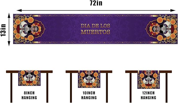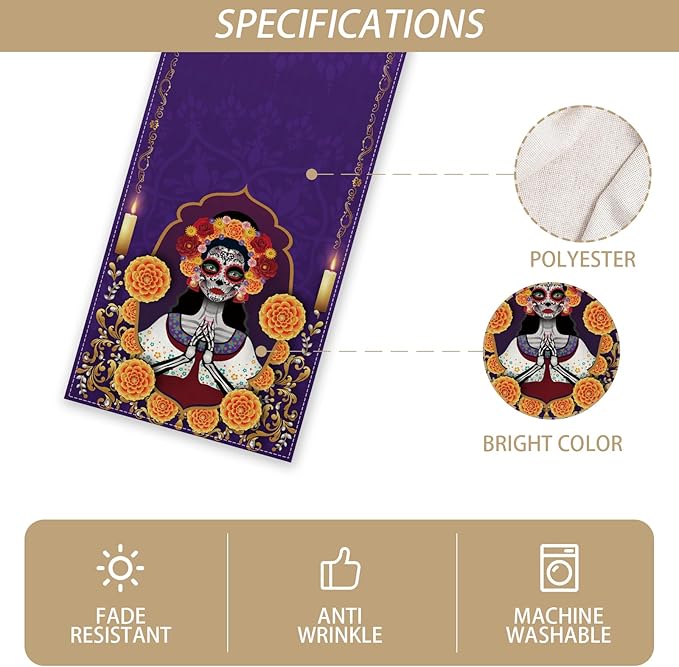De Los Muertos Tablecloth Sugar Skull Marigold Mexican Fiesta Party Decoration and Supplies for Home Kitchen Table-13×72''