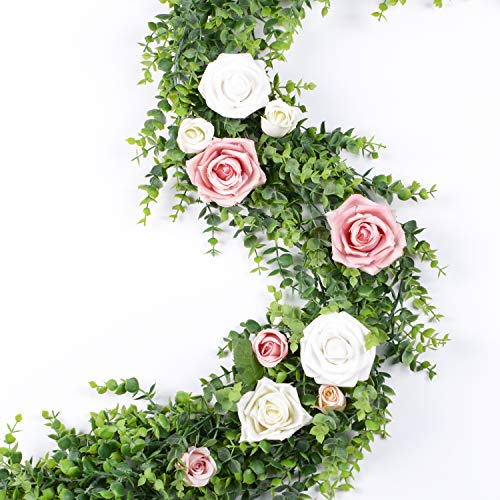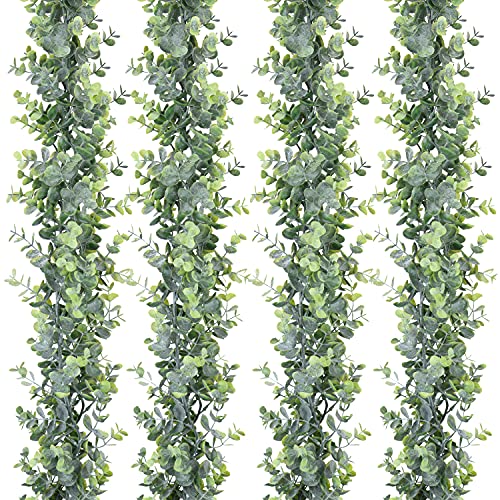 DearHouse 4 Pack Faux Eucalyptus Garland Plant, Artificial Vines Hanging Eucalyptus Leaves Greenery Garland for Wedding Backdrop Arch Wall Decor, 6 Feet/pcs UV Protected Indoor Outdoor