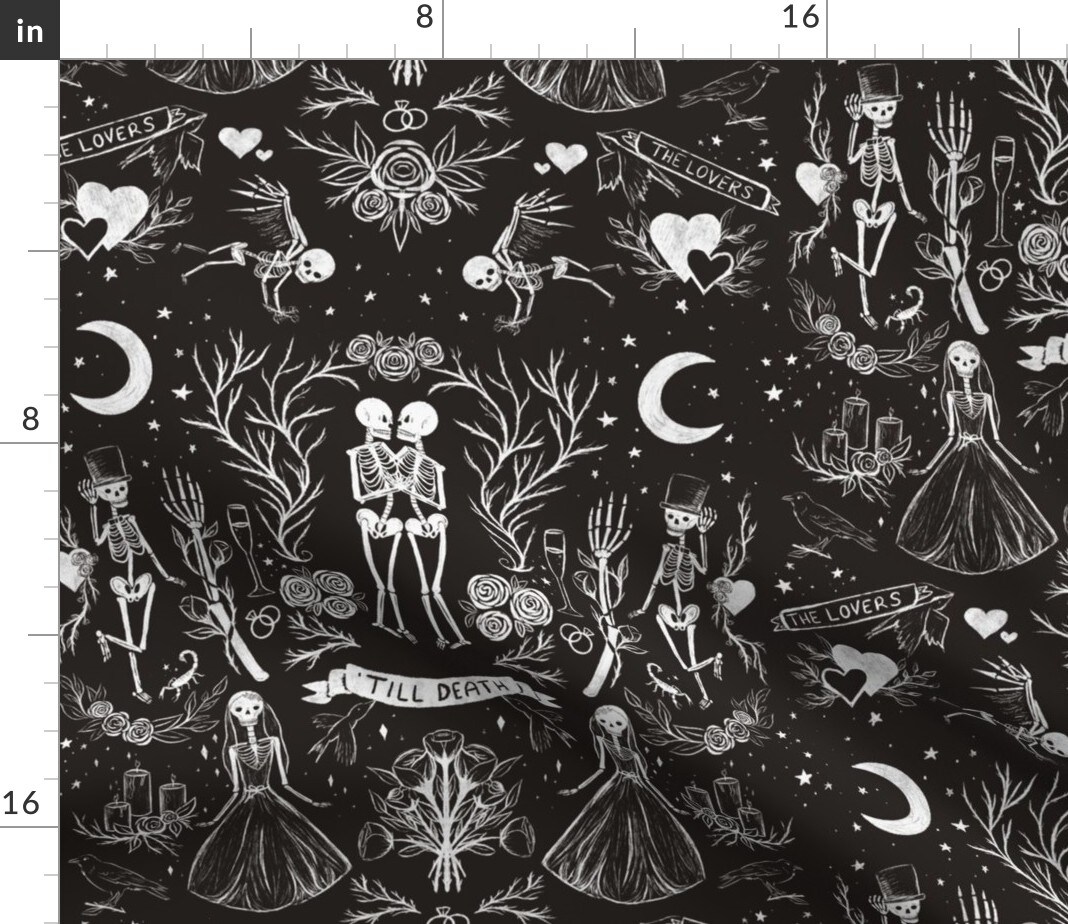 Death Gothic Halloween Black White Skeletons Wedding Lovers Groom Dark Custom Printed Fabric by Spoonflower Various Fabrics by the Yard or Fat Quarter