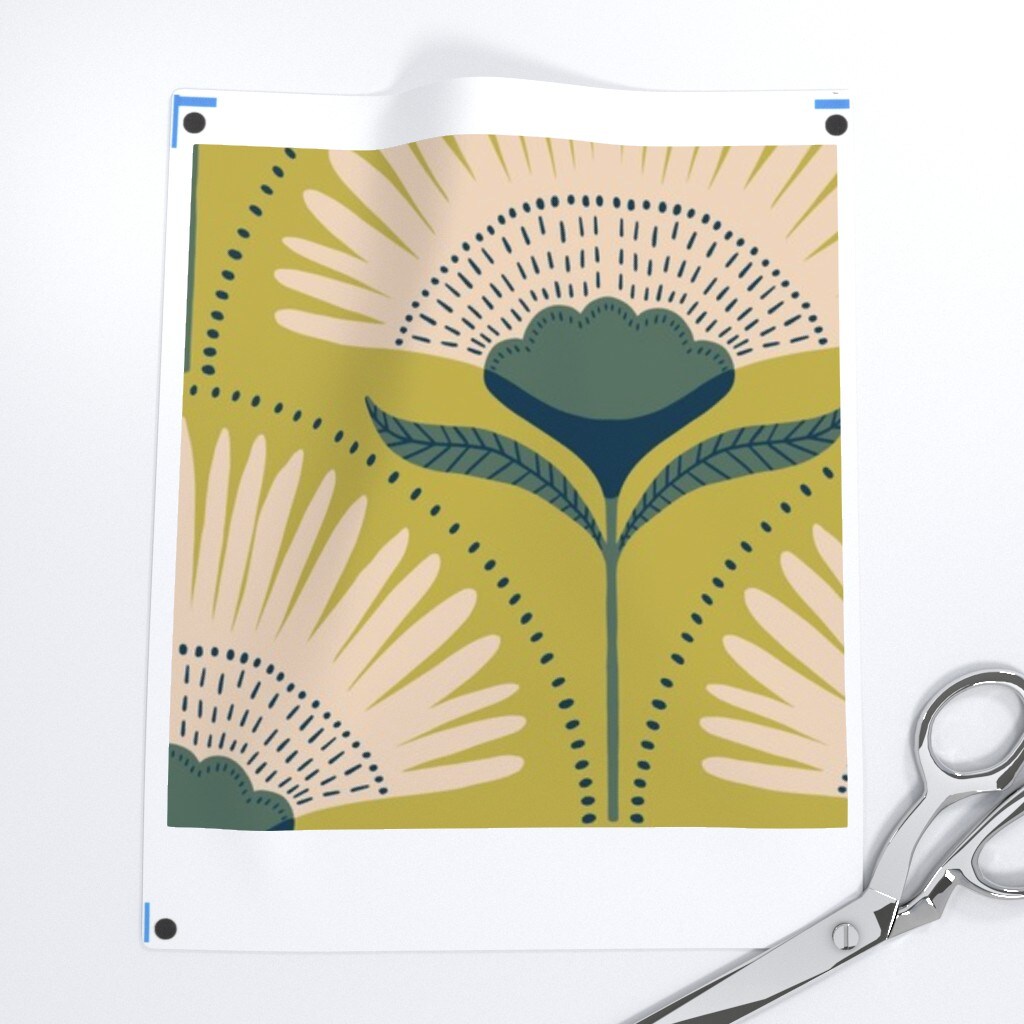 Deco Floral Fans Green Chartreuse Geometric Flowers Large Scale Mid Century Mod Custom Removable Wallpaper by Spoonflower Peel & Stick Wallpaper 2FT Wide