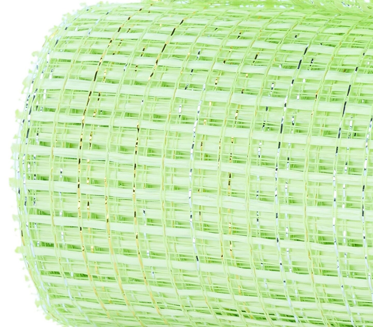 Deco Mesh: 10" Light Apple Green Metallic Weave Mesh - 10 Yards - Wreaths, Bows, Crafts, and Decorations