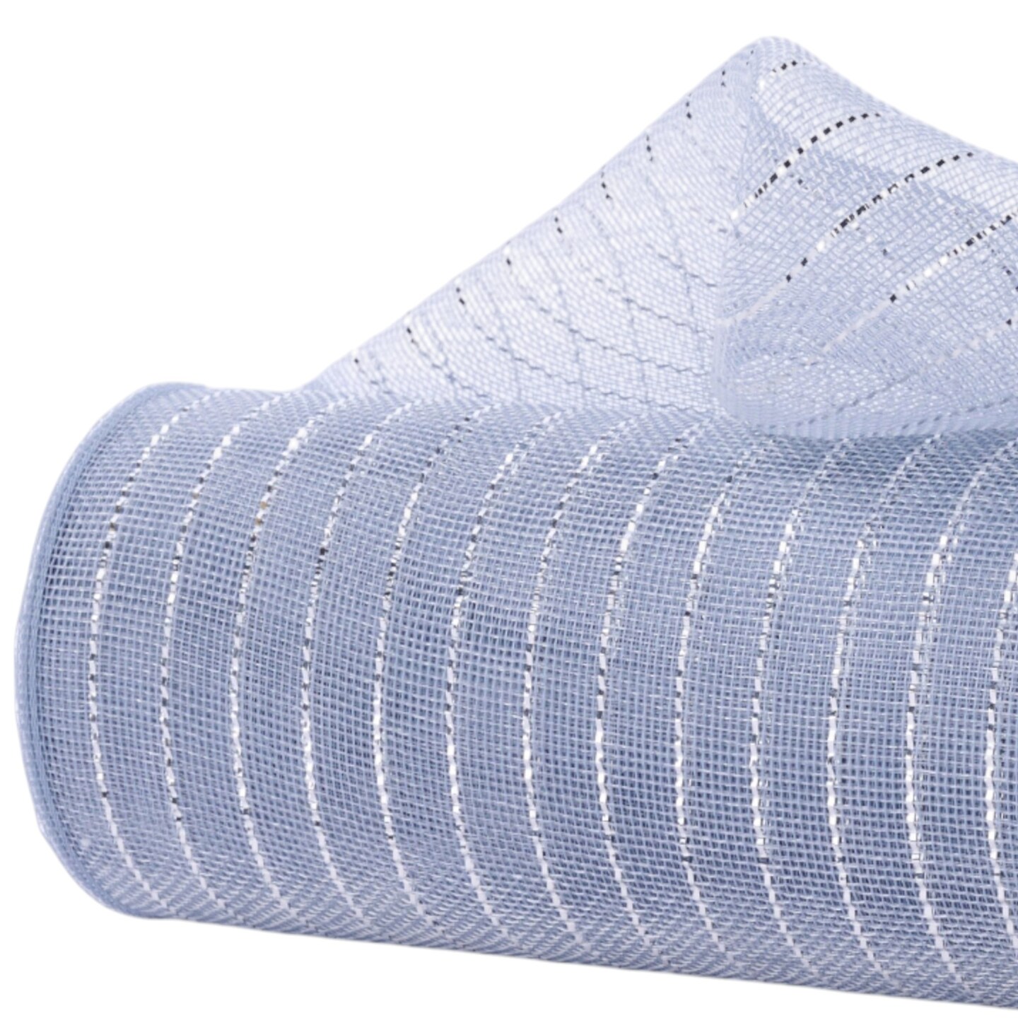 Deco Mesh: 10.25" Silver and Grey Fine Weave Mesh with Foil Stripes for Wreaths, Bows, Crafts, and Decorations