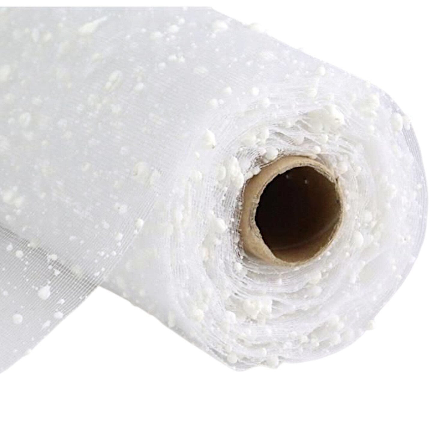 Deco Mesh: White Snow Mesh 10" x 10 Yards – Decorative Flocked Christmas Mesh for Wreaths, Garlands, Swags, and Winter Crafts