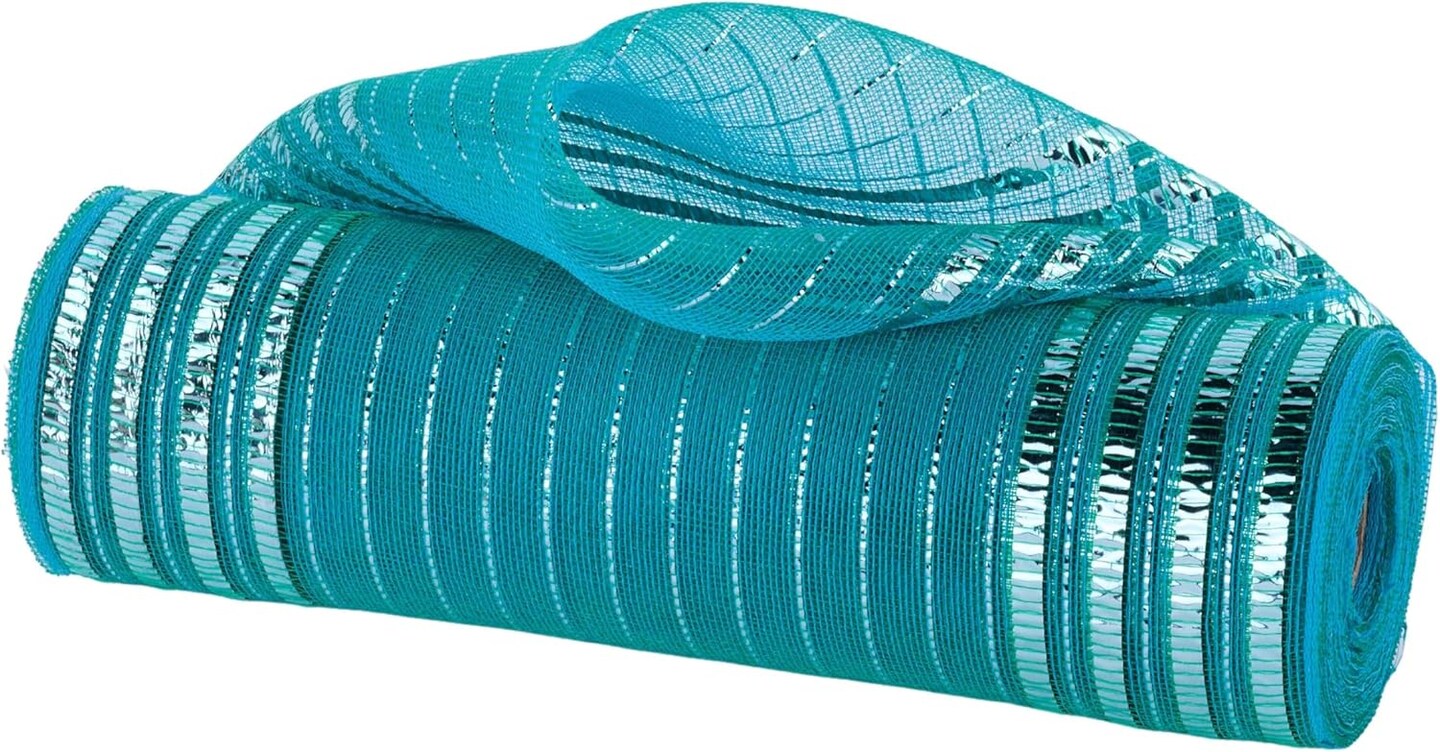 Deco Poly Mesh: 10" Teal Green Metallic Stripe Mesh - 10 Yards - For Bows, Wreaths, Crafts, and Decorations - Sports, Christmas, Holidays, Spring, Summer