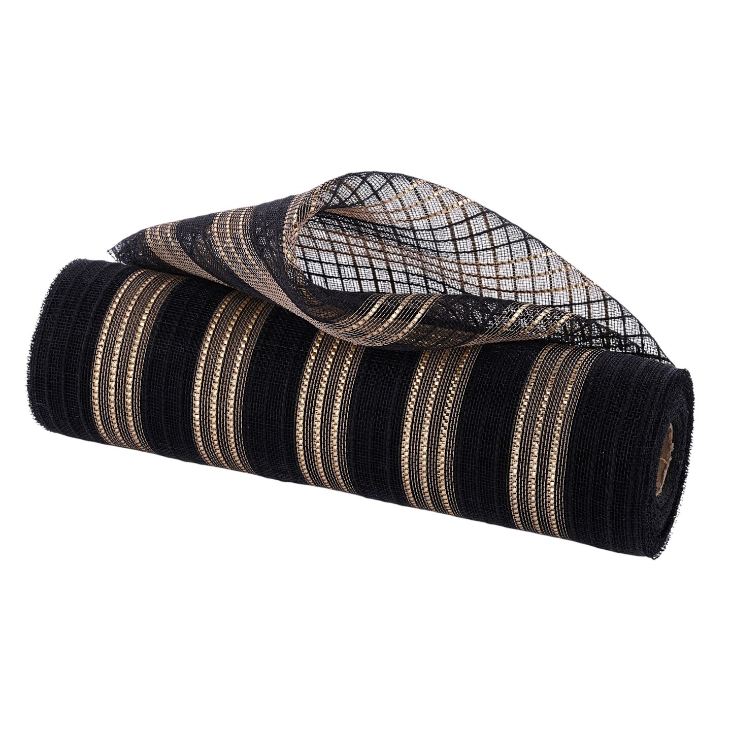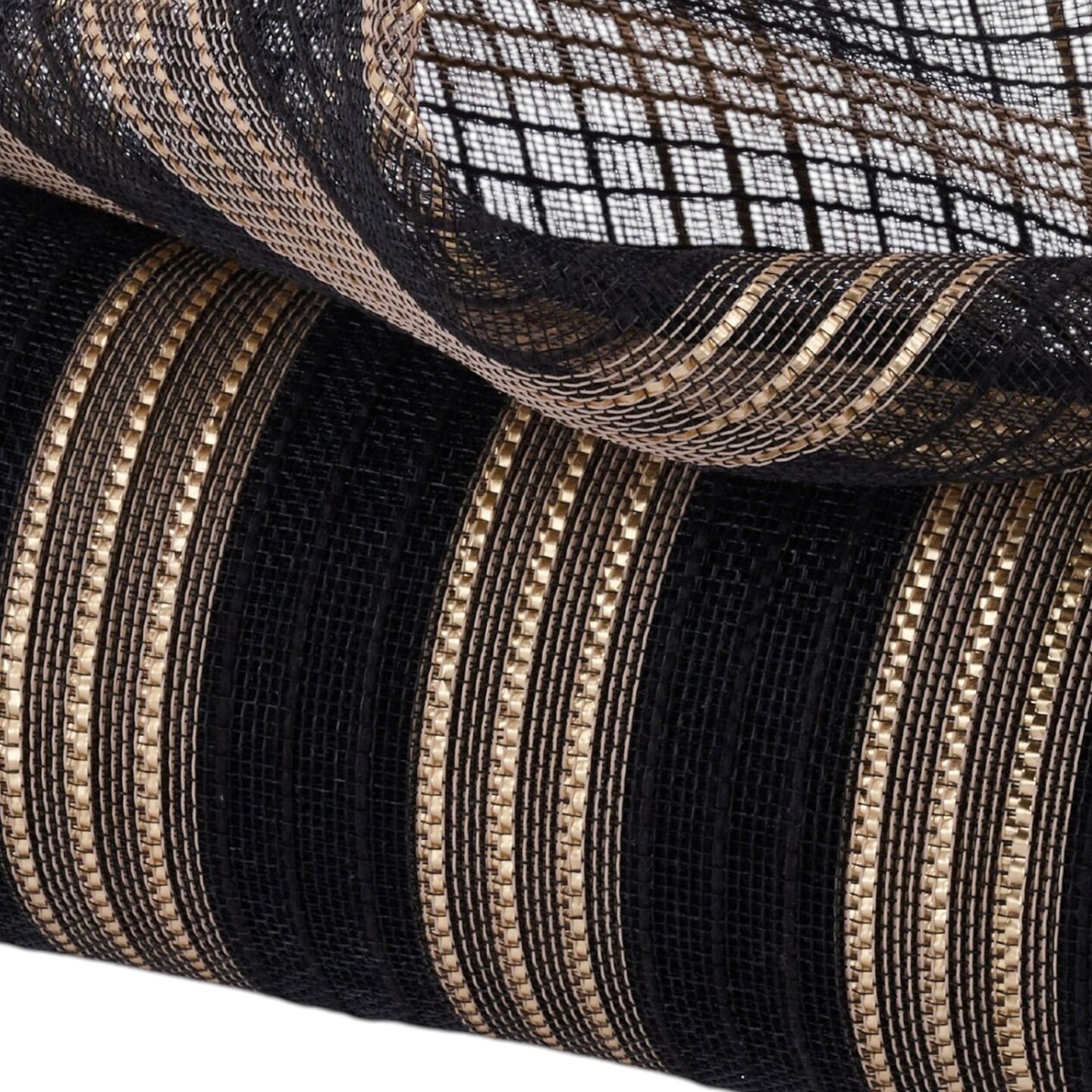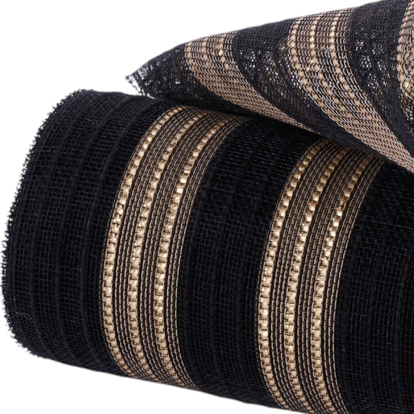 Deco Poly Mesh Black Faux Jute with Matte Gold Metallic Stripes, 10.5" for Wreaths, Bows, Crafts, and Decorations