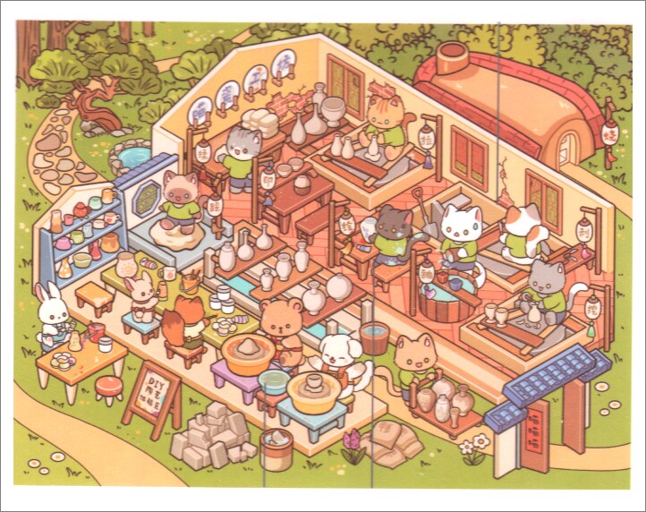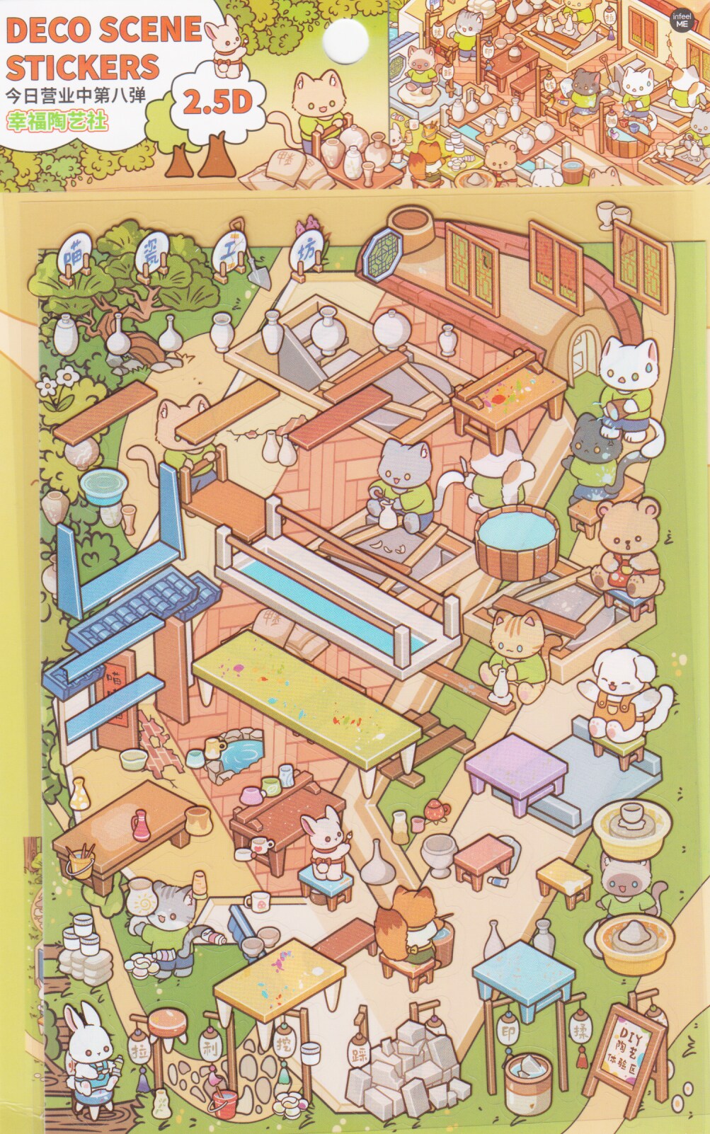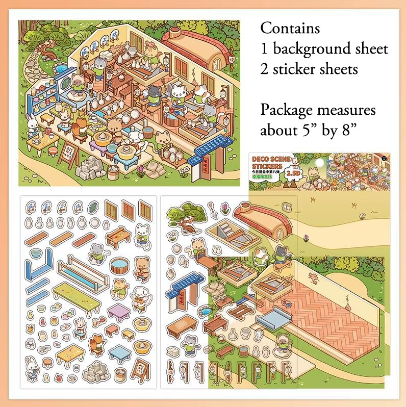 Deco Scene Sticker Set, Cute Animal Pottery Studio Isometric Stickers, Adorabilities