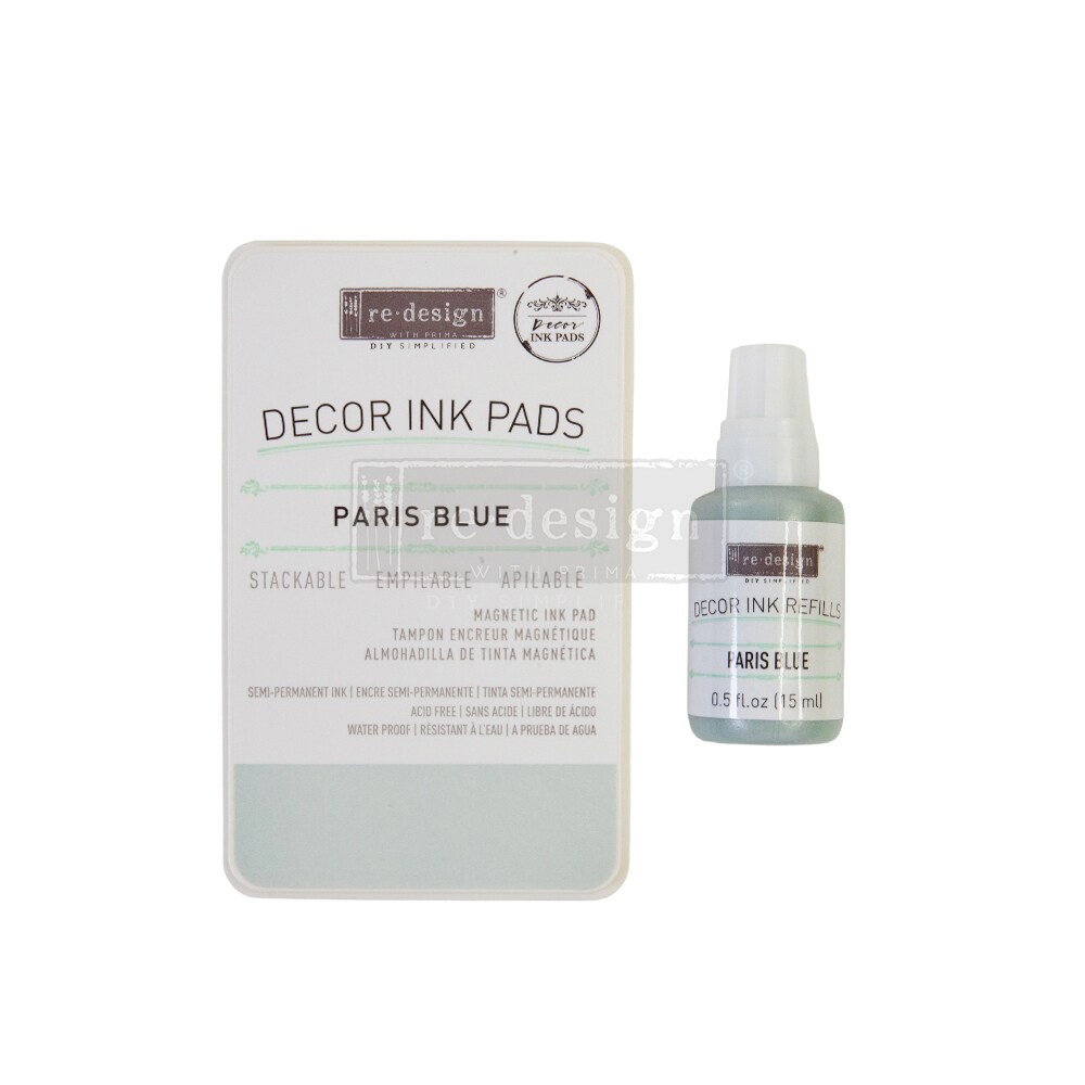 Decor Ink Pad - Paris Blue - 1 magnetic case + dry ink pad + 10ml ink bottle ink