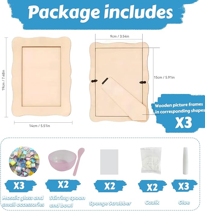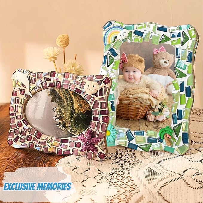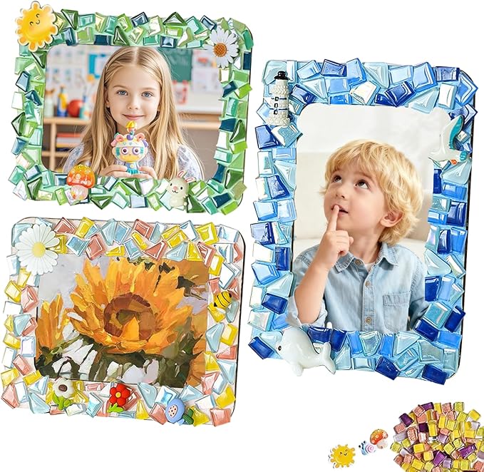 Decorate Your Own Mosaic Picture Frame Kit - 3 Pack DIY Arts & Crafts for Kids Ages 8-12, Valentines Day Gifts for Girls, 5x7 & 4x6 Photo Frames for Adults & Family